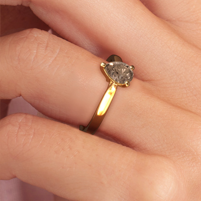 Nous avons donné le nom Mignon per 1 à la bague de fiançailles mentionnée ci-dessous. Ce type de bague de fiançailles est appelée une bague de fiançailles solitaire car elle ne contient qu’une seule pierre précieuse. La bague de fiançailles est forgée en or 14 Carat et comporte un diamant brun poire d’une de 0.65 crt. L’avantage de notre outil de configuration est que vous pouvez choisir les éléments de votre propres bijou pour créer vous-même votre propre bijou. Cette bague de fiançailles solitaire est faite à partir d’une combinaison de métal précieux d’or et d’or jaune, mais vous pouvez également choisir un or d’une autre couleur. Chaque bijou est faite pour briller sur votre doigt, chaque bijou est fabriqué à la main par nos orfèvres. La bague de fiançailles solitaire est une large bague de fiançailles. C'est précisément grâce au fait que le sertissage de chaton soit ouvert que l'incidence de la lumière crée un effet magnifique sur la pierre précieuse. Puisque la pierre précieuse choisie est sertie en élévation sur la bague de fiançailles, cette bague de fiançailles classiques attirera tous les regards une loyautés finie. Nous fabriquerons tous les détails de cette bague de fiançailles solitaire avec le plus grand soin, afin que vous puissiez bientôt couronner votre demande en mariage avec une bague unique, en particulier pour l'amour de votre vie ! Nos orfèvres ne fabriqueront votre bague de fiançailles qu'une fois que vous l'aurez commandée. Nous ne faisons pas de stock. L'avantage de cela est que nous n'avons pas à inclure les frais de stockage dans nos prix, et nous pouvons donc vous offrir des bijoux à un prix très bas.Notre équipe ajoute quotidiennement de nouveaux modèles à notre collection en ligne. Nos designers et orfèvres travaillent ensemble pour créer le meilleur design. Nous nous efforçons d'offrir une collection diversifiée de bijoux. Peut-être avez-vous déjà en tête un bijou en particulier ? Un bijou que vous avez trouvé quelque part. Veuillez nous contacter pour une consultation gratuite. Nous vous ferons une offre, basée sur un rapport qualité / prix juste, qui vous déconcertera.Pour vous faciliter la tâche, vous pouvez facilement nous retourner tout bijou commandé dans les 30 jours suivant la livraison.