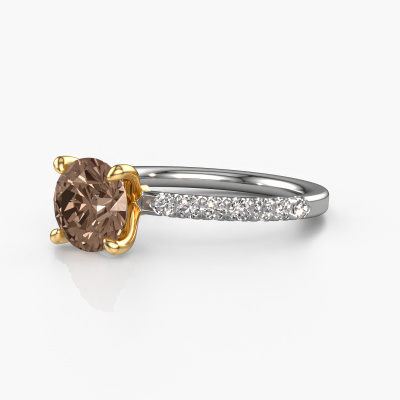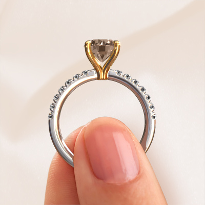 La bague de fiançailles mentionnée ci-dessus a été nommée Crystal RND 2. Ce type de bague de fiançailles est appelé une bague de fiançailles solitaire pavé car elle ne comporte qu’une seule pierre centrale et les tiges de la bague de fiançailles sont également pleins. La bague de fiançailles est faite dans une combinaison d'or 14 Carat et d’or jaune et a un diamant brun ronds d’une de 1.50 crt, et des diamants synthétiques sont sertis sur les épaules de l’anneau. Chaque bijou est unique car vous pouvez entièrement l'assembler à votre guise. Cette bague de fiançailles solitaire pavé forgée en or blanc classiques a un beau diamants bruns ronds comme pierre centrale, avec plus de diamants bruns sertis dans la bague pour accentuer encore plus la présence de la pierre centrale. Le sertissage à griffes autour du diamant brun étant ouvert, le diamant brun capte la lumière de tous les côtés et brille de manière optimale. Ci-dessus, vous pouvez voir comment notre orfèvre travaille la bague de fiançailles avec une extrême précision dans les moindres détails, de telle sorte que le diamant brun élevé puisse attirer tous les regards. Quelle belle bague de fiançailles à offrir lors de votre demande en mariage à l'amour de votre vie, à votre centre rayonnant ! Nos orfèvres ne fabriqueront votre bague de fiançailles qu'une fois que vous l'aurez commandée. Nous ne faisons pas de stock. L'avantage de cela est que nous n'avons pas à inclure les frais de stockage dans nos prix, et nous pouvons donc vous offrir des bijoux à un prix très bas.Notre équipe ajoute quotidiennement de nouveaux modèles à notre collection en ligne. Nos designers et orfèvres travaillent ensemble pour créer le meilleur design. Nous nous efforçons d'offrir une collection diversifiée de bijoux. Peut-être avez-vous déjà en tête un bijou en particulier ? Un bijou que vous avez trouvé quelque part. Veuillez nous contacter pour une consultation gratuite. Nous vous ferons une offre, basée sur un rapport qualité / prix juste, qui vous déconcertera.Pour vous faciliter la tâche, vous pouvez facilement nous retourner tout bijou commandé dans les 30 jours suivant la livraison.