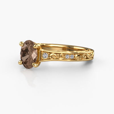 Nous avons donné le nom Mallory ovl à la bague de fiançailles mentionnée ci-dessous. Ce type de bague de fiançailles est appelé une bague de fiançailles solitaire pavé car elle ne comporte qu’une seule pierre centrale et les tiges de la bague de fiançailles ont également une finition pleine. Cette bague de fiançailles est forgée en or 14 Carat et comporte un diamant brun ovale de 1.10 crt. Des diamants synthétiques sont sertis dans les épaules latérales de l’anneau. Chaque bijou est faite avec passion et amour par l'un de nos maîtres orfèvres.. Cette bague de fiançailles solitaire pavé forgée en or jaune traditionnelles a un beau diamant brun ovale en guise de pierre centrale, avec plus de diamants synthétiques dans l’anneau pour accentuer encore plus l’effet de la pierre centrale. Le sertissage à griffes autour du diamant brun étant ouvert, le diamant brun capte la lumière de tous les côtés et brille de manière optimale. Ci-dessus, vous pouvez voir comment notre orfèvre a travaillé la bague de fiançailles dans les moindres détails. de telle sorte que le diamant brun élevé puisse véritablement attirer tous les regards. Quelle belle bague de fiançailles à offre lors de votre demande en mariage à l'amour de votre vie, à votre centre rayonnant ! Vous avez peut-être remarqué que nos prix sont en moyenne inférieurs de 30% à ceux d'un autre bijoutier. Et ce alors que la qualité de nos bijoux est même plus élevée dans la plupart des cas ! En effet, nos orfèvres fabriquent votre bague de fiançailles directement dans notre propre atelier. Cela signifie que nous n'avons pas à inclure des frais de stocks coûteux et que nous pouvons travailler n'importe quel détail directement sur votre bague de fiançailles.Notre équipe ajoute quotidiennement de nouveaux modèles à notre collection en ligne. Nos designers et orfèvres travaillent ensemble pour créer le meilleur design. Nous nous efforçons d'offrir une collection diversifiée de bijoux. Peut-être avez-vous déjà en tête un bijou en particulier ? Un bijou que vous avez trouvé quelque part. Veuillez nous contacter pour une consultation gratuite. Nous vous ferons une offre, basée sur un rapport qualité / prix juste, qui vous déconcertera.Pour vous faciliter la tâche, vous pouvez facilement nous retourner tout bijou commandé dans les 30 jours suivant la livraison.