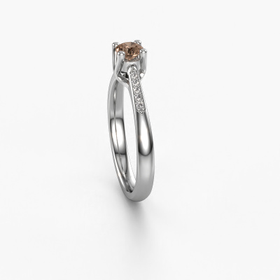 Nous avons donné le nom Janna 2 à la bague de fiançailles mentionnée ci-dessous. Ce type de bague de fiançailles est appelé une bague de fiançailles solitaire pavé car elle ne comporte qu’une seule pierre centrale et les tiges de la bague de fiançailles ont également une finition pleine. Cette bague de fiançailles est forgée en or et comporte un diamant brun ronds de 0.25 crt. Des diamants sont sertis dans les épaules latérales de l’anneau. Chaque bijou est fabriquée spécialement pour vous par nos maîtres orfèvres dans notre propre atelier.. Cette bague de fiançailles solitaire pavé forgée en platine classiques a un beau diamant brun ronds en guise de pierre centrale, avec plus de diamants dans l’anneau pour accentuer encore plus l’effet de la pierre centrale. Le sertissage à griffes autour du diamant brun étant ouvert, le diamant brun capte la lumière de tous les côtés et brille de manière optimale. Ci-dessus, vous pouvez voir comment notre orfèvre a travaillé la bague de fiançailles dans les moindres détails. de telle sorte que le diamant brun élevé puisse véritablement attirer tous les regards. Quelle belle bague de fiançailles à offre lors de votre demande en mariage à l'amour de votre vie, à votre centre rayonnant ! En combinant les dernières techniques modernes, associées à une fabrication ancienne, nous sommes en mesure de fabriquer nos bagues de fiançailles dans notre propre studio. Chaque bijou est fabriqué sur commande. Ceci est avantageux car nous sommes en mesure de vous proposer un prix que vous ne trouverez nulle part ailleurs.Avez-vous déjà des bague de fiançailles spécifiques en tête ? Une bague de fiançailles que vous avez vu quelque part. N'hésitez pas à nous faire part de vos souhaits et nous transformerons votre design en des bague de fiançailles uniques. Vous êtes en mesure de suivre l'évolution de la conception de vos bague de fiançailles car nous utilisons des dessins en 3D. Cela vous donnera un aperçu réaliste de votre design. Nous vous enverrons volontiers une offre sans engagement basée sur un rapport qualité / prix juste. Elle va vous étonner.Pour vous faciliter la tâche, vous pouvez facilement nous retourner tout bijou commandé dans les 30 jours suivant la livraison.