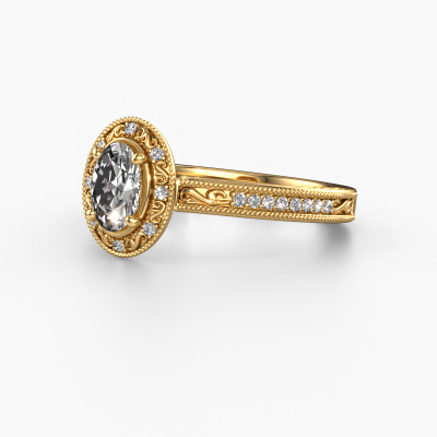 Cette bague de fiançailles porte le nom Alice OVL. Cette bague de fiançailles forgée en or 14 Carat est sertie d’un diamant de 0.832 crt. Qu'est-ce qui rend votre relation unique ? Qu'est-ce que qui fait que vous souhaitiez qu’elle devienne votre femmes ? Cet anneau unique que vous avez ensemble peut être reflété dans une bague unique. Une bague de fiançailles halo unique qui est seulement créée pour elle. Et c'est la raison pour laquelle cette bague de fiançailles lui ira parfaitement. Chaque détail de cette bague de fiançailles ci-dessous forgée en or jaune sertie d’un diamant est composée, travaillée et polie à la main par notre orfèvre dans notre atelier. Le résultat final est une magnifique bague de fiançailles, unique et parfaitement forgée dans les moindres détails ! Ce résultat est ce que nos orfèvres recherchent à tout prix ! Ce bijou est faite avec passion et amour par l'un de nos maîtres orfèvres.Qu'y a-t-il dorénavant de plus beau qu'une bague de fiançailles vintage conçue par vous-même et fabriquée à la main par nous. Vous pouvez personnaliser chaque modèle avec les différents métaux précieux et pierres précieuses. De cette façon, vous pourrez créer une bague de fiançailles unique. Cette bague peut être mise en place de plusieurs façons. Bien sûr, vous pouvez toujours nous contacter et nous serons heureux de vous aider à composer votre bague de fiançailles vintage Alice OVL. Vous aimez le design, mais vous souhaitez tout de même quelque chose qui vous convienne plus, ou bien vous souhaitez une pierre précieuse dans les bijoux que vous ne pouvez pas choisir sur notre site, contactez-nous et nous vous aiderons.Notre équipe ajoute quotidiennement de nouveaux modèles à notre collection en ligne. Nos designers et orfèvres travaillent ensemble pour créer le meilleur design. Nous nous efforçons d'offrir une collection diversifiée de bijoux. Peut-être avez-vous déjà en tête un bijou en particulier ? Un bijou que vous avez trouvé quelque part. Veuillez nous contacter pour une consultation gratuite. Nous vous ferons une offre, basée sur un rapport qualité / prix juste, qui vous déconcertera.Pour vous faciliter la tâche, vous pouvez facilement nous retourner tout bijou commandé dans les 30 jours suivant la livraison.