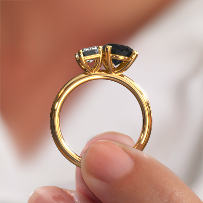Cette bague de fiançailles porte le nom Toi et Moi OVL-EME. Cette bague de fiançailles forgée en or 14 Carat est sertie d’un diamant noir de 3.06 crt. Qu'est-ce qui rend votre relation unique ? Qu'est-ce que qui fait que vous souhaitiez qu’elle devienne votre femmes ? Cet anneau unique que vous avez ensemble peut être reflété dans une bague unique. Une bague de fiançailles 2 pierres unique qui est seulement créée pour elle. Et c'est la raison pour laquelle cette bague de fiançailles lui ira parfaitement. Chaque détail de cette bague de fiançailles ci-dessous forgée en or jaune sertie d’un diamant noir est composée, travaillée et polie à la main par notre orfèvre dans notre atelier. Le résultat final est une magnifique bague de fiançailles, unique et parfaitement forgée dans les moindres détails ! Ce résultat est ce que nos orfèvres recherchent à tout prix ! Ce bijou est faite spécialement pour vous, avec une attention particulière portée aux détails et au design.Nos orfèvres ne fabriqueront votre bague de fiançailles qu'une fois que vous l'aurez commandée. Nous ne faisons pas de stock. L'avantage de cela est que nous n'avons pas à inclure les frais de stockage dans nos prix, et nous pouvons donc vous offrir des bijoux à un prix très bas.Notre équipe ajoute quotidiennement de nouveaux modèles à notre collection en ligne. Nos designers et orfèvres travaillent ensemble pour créer le meilleur design. Nous nous efforçons d'offrir une collection diversifiée de bijoux. Peut-être avez-vous déjà en tête un bijou en particulier ? Un bijou que vous avez trouvé quelque part. Veuillez nous contacter pour une consultation gratuite. Nous vous ferons une offre, basée sur un rapport qualité / prix juste, qui vous déconcertera.Pour vous faciliter la tâche, vous pouvez facilement nous retourner tout bijou commandé dans les 30 jours suivant la livraison.