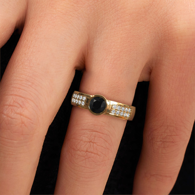 La bague de fiançailles mentionnée ci-dessus a été nommée Ise 3. Ce type de bague de fiançailles est appelé une bague de fiançailles solitaire pavé car elle ne comporte qu’une seule pierre centrale et les tiges de la bague de fiançailles sont également pleins. La bague de fiançailles est faite dans une combinaison d'or 14 Carat et d’or jaune et a un diamant noir ronds d’une de 0.48 crt, et des diamants sont sertis sur les épaules de l’anneau. Chaque bijou est fabriquée spécialement pour vous par nos maîtres orfèvres dans notre propre atelier. Cette bague de fiançailles solitaire pavé forgée en or jaune modernes a un beau diamants noirs ronds comme pierre centrale, avec plus de diamants noirs sertis dans la bague pour accentuer encore plus la présence de la pierre centrale. Le sertissage à griffes autour du diamant noir étant ouvert, le diamant noir capte la lumière de tous les côtés et brille de manière optimale. Ci-dessus, vous pouvez voir comment notre orfèvre travaille la bague de fiançailles avec une extrême précision dans les moindres détails, de telle sorte que le diamant noir élevé puisse attirer tous les regards. Quelle belle bague de fiançailles à offrir lors de votre demande en mariage à l'amour de votre vie, à votre centre rayonnant ! Puisque nous concevons et livrons nos propres bijoux, nous sommes en mesure de vous proposer une bague de fiançailles à un prix que vous ne pourrez pas trouver ailleurs. Une alliance est fabriquée sur commande, ce qui permet d'éviter les excédents de matériel et nous permet de vous proposer une superbe offre de prix. Nous comprenons qu'acheter votre bague de fiançailles en ligne soit un risque, mais nous vous assistons volontiers dans le processus de conception, en tenant compte de votre budget.Notre équipe ajoute quotidiennement de nouveaux modèles à notre collection en ligne. Nos designers et orfèvres travaillent ensemble pour créer le meilleur design. Nous nous efforçons d'offrir une collection diversifiée de bijoux. Peut-être avez-vous déjà en tête un bijou en particulier ? Un bijou que vous avez trouvé quelque part. Veuillez nous contacter pour une consultation gratuite. Nous vous ferons une offre, basée sur un rapport qualité / prix juste, qui vous déconcertera.Pour vous faciliter la tâche, vous pouvez facilement nous retourner tout bijou commandé dans les 30 jours suivant la livraison.