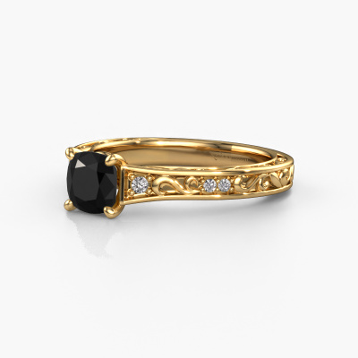 Nous avons donné le nom Mallory cus à la bague de fiançailles mentionnée ci-dessous. Ce type de bague de fiançailles est appelé une bague de fiançailles solitaire pavé car elle ne comporte qu’une seule pierre centrale et les tiges de la bague de fiançailles ont également une finition pleine. Cette bague de fiançailles est forgée en or 14 Carat et comporte un diamant noir coussin de 1.15 crt. Des diamants sont sertis dans les épaules latérales de l’anneau. Chaque bijou est fabriquée spécialement pour vous par nos maîtres orfèvres dans notre propre atelier.. Cette bague de fiançailles solitaire pavé forgée en or jaune Celtiques a un beau diamant noir coussin en guise de pierre centrale, avec plus de diamants dans l’anneau pour accentuer encore plus l’effet de la pierre centrale. Le sertissage à griffes autour du diamant noir étant ouvert, le diamant noir capte la lumière de tous les côtés et brille de manière optimale. Ci-dessus, vous pouvez voir comment notre orfèvre a travaillé la bague de fiançailles dans les moindres détails. de telle sorte que le diamant noir élevé puisse véritablement attirer tous les regards. Quelle belle bague de fiançailles à offre lors de votre demande en mariage à l'amour de votre vie, à votre centre rayonnant ! Qu'y a-t-il dorénavant de plus beau qu'une bague de fiançailles Celtiques conçue par vous-même et fabriquée à la main par nous. Vous pouvez personnaliser chaque modèle avec les différents métaux précieux et pierres précieuses. De cette façon, vous pourrez créer une bague de fiançailles unique. Cette bague peut être mise en place de plusieurs façons. Bien sûr, vous pouvez toujours nous contacter et nous serons heureux de vous aider à composer votre bague de fiançailles Celtiques Mallory cus. Vous aimez le design, mais vous souhaitez tout de même quelque chose qui vous convienne plus, ou bien vous souhaitez une pierre précieuse dans les bijoux que vous ne pouvez pas choisir sur notre site, contactez-nous et nous vous aiderons.Notre équipe ajoute quotidiennement de nouveaux modèles à notre collection en ligne. Nos designers et orfèvres travaillent ensemble pour créer le meilleur design. Nous nous efforçons d'offrir une collection diversifiée de bijoux. Peut-être avez-vous déjà en tête un bijou en particulier ? Un bijou que vous avez trouvé quelque part. Veuillez nous contacter pour une consultation gratuite. Nous vous ferons une offre, basée sur un rapport qualité / prix juste, qui vous déconcertera.Pour vous faciliter la tâche, vous pouvez facilement nous retourner tout bijou commandé dans les 30 jours suivant la livraison.
