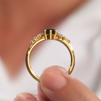 Le nom de cette bague de fiançailles est Royce PER. Elle est forgée en or 14 Carat et est sertie d'un diamant noir de 1.453 crt. Comment décririez-vous le style de l'amour de votre vie ? Est-ce qu'elle aime quelque chose qui est juste un peu plus