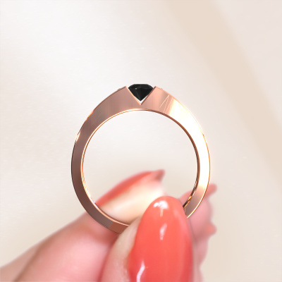 Nous avons donné le nom Lizzy 2 à la bague de fiançailles mentionnée ci-dessous. Ce type de bague de fiançailles est appelé une bague de fiançailles solitaire pavé car elle ne comporte qu’une seule pierre centrale et les tiges de la bague de fiançailles ont également une finition pleine. Cette bague de fiançailles est forgée en or 14 Carat et comporte un diamant noir ronds de 0.36 crt. Des diamants sont sertis dans les épaules latérales de l’anneau. Chaque bijou est fabriquées avec passion et amour par l'un de nos maîtres orfèvres.. Cette bague de fiançailles solitaire pavé forgée en or rose modernes a un beau diamant noir ronds en guise de pierre centrale, avec plus de diamants dans l’anneau pour accentuer encore plus l’effet de la pierre centrale. Le sertissage à griffes autour du diamant noir étant ouvert, le diamant noir capte la lumière de tous les côtés et brille de manière optimale. Ci-dessus, vous pouvez voir comment notre orfèvre a travaillé la bague de fiançailles dans les moindres détails. de telle sorte que le diamant noir élevé puisse véritablement attirer tous les regards. Quelle belle bague de fiançailles à offre lors de votre demande en mariage à l'amour de votre vie, à votre centre rayonnant ! En combinant les dernières techniques modernes, associées à une fabrication ancienne, nous sommes en mesure de fabriquer nos bagues de fiançailles dans notre propre studio. Chaque bijou est fabriqué sur commande. Ceci est avantageux car nous sommes en mesure de vous proposer un prix que vous ne trouverez nulle part ailleurs.Notre équipe ajoute quotidiennement de nouveaux modèles à notre collection en ligne. Nos designers et orfèvres travaillent ensemble pour créer le meilleur design. Nous nous efforçons d'offrir une collection diversifiée de bijoux. Peut-être avez-vous déjà en tête un bijou en particulier ? Un bijou que vous avez trouvé quelque part. Veuillez nous contacter pour une consultation gratuite. Nous vous ferons une offre, basée sur un rapport qualité / prix juste, qui vous déconcertera.Pour vous faciliter la tâche, vous pouvez facilement nous retourner tout bijou commandé dans les 30 jours suivant la livraison.