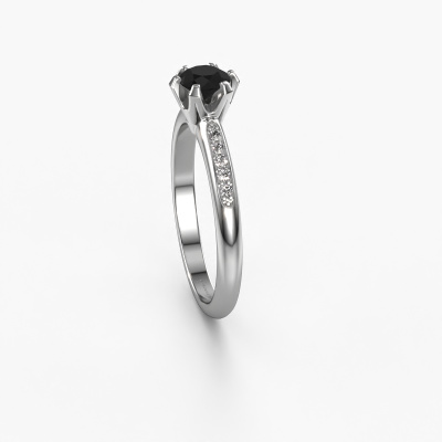 Nous avons donné le nom Tiffy 2 à la bague de fiançailles mentionnée ci-dessous. Ce type de bague de fiançailles est appelé une bague de fiançailles solitaire pavé car elle ne comporte qu’une seule pierre centrale et les tiges de la bague de fiançailles ont également une finition pleine. Cette bague de fiançailles est forgée en or et comporte un diamant noir ronds de 0.48 crt. Des diamants sont sertis dans les épaules latérales de l’anneau. Chaque bijou est faite pour briller sur votre doigt, chaque bijou est fabriqué à la main par nos orfèvres.. Cette bague de fiançailles solitaire pavé forgée en platine traditionnelles a un beau diamant noir ronds en guise de pierre centrale, avec plus de diamants dans l’anneau pour accentuer encore plus l’effet de la pierre centrale. Le sertissage à griffes autour du diamant noir étant ouvert, le diamant noir capte la lumière de tous les côtés et brille de manière optimale. Ci-dessus, vous pouvez voir comment notre orfèvre a travaillé la bague de fiançailles dans les moindres détails. de telle sorte que le diamant noir élevé puisse véritablement attirer tous les regards. Quelle belle bague de fiançailles à offre lors de votre demande en mariage à l'amour de votre vie, à votre centre rayonnant ! Qu'y a-t-il dorénavant de plus beau qu'une bague de fiançailles traditionnelles conçue par vous-même et fabriquée à la main par nous. Vous pouvez personnaliser chaque modèle avec les différents métaux précieux et pierres précieuses. De cette façon, vous pourrez créer une bague de fiançailles unique. Cette bague peut être mise en place de plusieurs façons. Bien sûr, vous pouvez toujours nous contacter et nous serons heureux de vous aider à composer votre bague de fiançailles traditionnelles Tiffy 2. Vous aimez le design, mais vous souhaitez tout de même quelque chose qui vous convienne plus, ou bien vous souhaitez une pierre précieuse dans les bijoux que vous ne pouvez pas choisir sur notre site, contactez-nous et nous vous aiderons.Notre équipe de designers talentueux et passionnés ajoute chaque jour de nouveaux modèles bague de fiançailles à notre collection en ligne. Notre objectif est de pouvoir vous offrir une grande variété de bijoux. N'hésitez pas à demander un devis si vous avez des souhaits spécifiques pour votre bague de fiançailles. Nous garantissons de vous faire une offre que vous ne pourrez pas refuser.Pour vous faciliter la tâche, vous pouvez facilement nous retourner tout bijou commandé dans les 30 jours suivant la livraison.