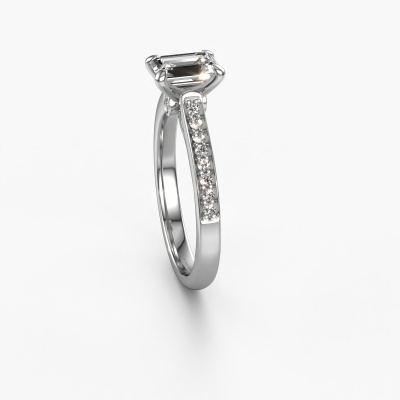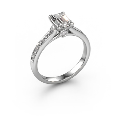La bague de fiançailles mentionnée ci-dessus a été nommée Valorie eme 2. Ce type de bague de fiançailles est appelé une bague de fiançailles solitaire pavé car elle ne comporte qu’une seule pierre centrale et les tiges de la bague de fiançailles sont également pleins. La bague de fiançailles est faite dans une combinaison d'or 14 Carat et d’or blanc et a un diamant taille émeraude d’une de 0.90 crt, et des diamants sont sertis sur les épaules de l’anneau. Chaque bijou est fabriquée par une équipe d'orfèvres et de designers motivés. Cela permettra à cette pièce unique d'attirer tous les regards. Cette bague de fiançailles solitaire pavé forgée en or blanc classiques a un beau diamants taille émeraude comme pierre centrale, avec plus de diamants sertis dans la bague pour accentuer encore plus la présence de la pierre centrale. Le sertissage à griffes autour du diamant étant ouvert, le diamant capte la lumière de tous les côtés et brille de manière optimale. Ci-dessus, vous pouvez voir comment notre orfèvre travaille la bague de fiançailles avec une extrême précision dans les moindres détails, de telle sorte que le diamant élevé puisse attirer tous les regards. Quelle belle bague de fiançailles à offrir lors de votre demande en mariage à l'amour de votre vie, à votre centre rayonnant ! Qu'y a-t-il dorénavant de plus beau qu'une bague de fiançailles classiques conçue par vous-même et fabriquée à la main par nous. Vous pouvez personnaliser chaque modèle avec les différents métaux précieux et pierres précieuses. De cette façon, vous pourrez créer une bague de fiançailles unique. Cette bague peut être mise en place de plusieurs façons. Bien sûr, vous pouvez toujours nous contacter et nous serons heureux de vous aider à composer votre bague de fiançailles classiques Valorie eme 2. Vous aimez le design, mais vous souhaitez tout de même quelque chose qui vous convienne plus, ou bien vous souhaitez une pierre précieuse dans les bijoux que vous ne pouvez pas choisir sur notre site, contactez-nous et nous vous aiderons.Avez-vous déjà des bague de fiançailles spécifiques en tête ? Une bague de fiançailles que vous avez vu quelque part. N'hésitez pas à nous faire part de vos souhaits et nous transformerons votre design en des bague de fiançailles uniques. Vous êtes en mesure de suivre l'évolution de la conception de vos bague de fiançailles car nous utilisons des dessins en 3D. Cela vous donnera un aperçu réaliste de votre design. Nous vous enverrons volontiers une offre sans engagement basée sur un rapport qualité / prix juste. Elle va vous étonner.Pour vous faciliter la tâche, vous pouvez facilement nous retourner tout bijou commandé dans les 30 jours suivant la livraison.