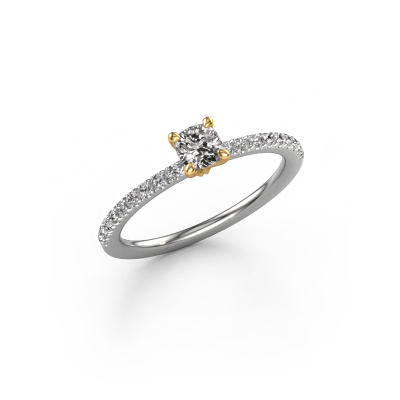 La bague de fiançailles mentionnée ci-dessus a été nommée Crystal CUS 2. Ce type de bague de fiançailles est appelé une bague de fiançailles solitaire pavé car elle ne comporte qu’une seule pierre centrale et les tiges de la bague de fiançailles sont également pleins. La bague de fiançailles est faite dans une combinaison d'or 14 Carat et d’or jaune et a un diamant coussin d’une de 0.33 crt, et des diamants sont sertis sur les épaules de l’anneau. Chaque bijou est fabriquée spécialement pour vous par nos maîtres orfèvres dans notre propre atelier. Cette bague de fiançailles solitaire pavé forgée en or blanc classiques a un beau diamants coussin comme pierre centrale, avec plus de diamants sertis dans la bague pour accentuer encore plus la présence de la pierre centrale. Le sertissage à griffes autour du diamant étant ouvert, le diamant capte la lumière de tous les côtés et brille de manière optimale. Ci-dessus, vous pouvez voir comment notre orfèvre travaille la bague de fiançailles avec une extrême précision dans les moindres détails, de telle sorte que le diamant élevé puisse attirer tous les regards. Quelle belle bague de fiançailles à offrir lors de votre demande en mariage à l'amour de votre vie, à votre centre rayonnant ! Nos orfèvres ne fabriqueront votre bague de fiançailles qu'une fois que vous l'aurez commandée. Nous ne faisons pas de stock. L'avantage de cela est que nous n'avons pas à inclure les frais de stockage dans nos prix, et nous pouvons donc vous offrir des bijoux à un prix très bas.Notre équipe ajoute quotidiennement de nouveaux modèles à notre collection en ligne. Nos designers et orfèvres travaillent ensemble pour créer le meilleur design. Nous nous efforçons d'offrir une collection diversifiée de bijoux. Peut-être avez-vous déjà en tête un bijou en particulier ? Un bijou que vous avez trouvé quelque part. Veuillez nous contacter pour une consultation gratuite. Nous vous ferons une offre, basée sur un rapport qualité / prix juste, qui vous déconcertera.Pour vous faciliter la tâche, vous pouvez facilement nous retourner tout bijou commandé dans les 30 jours suivant la livraison.