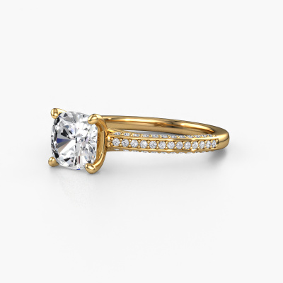 Nous avons donné le nom Elenore cus à la bague de fiançailles mentionnée ci-dessous. Ce type de bague de fiançailles est appelé une bague de fiançailles solitaire pavé car elle ne comporte qu’une seule pierre centrale et les tiges de la bague de fiançailles ont également une finition pleine. Cette bague de fiançailles est forgée en or 14 Carat et comporte un diamant coussin de 1.50 crt. Des diamants synthétiques sont sertis dans les épaules latérales de l’anneau. Chaque bijou est fabriquée par une équipe d'orfèvres et de designers motivés. Cela permettra à cette pièce unique d'attirer tous les regards.. Cette bague de fiançailles solitaire pavé forgée en or jaune contemporains a un beau diamant coussin en guise de pierre centrale, avec plus de diamants synthétiques dans l’anneau pour accentuer encore plus l’effet de la pierre centrale. Le sertissage à griffes autour du diamant étant ouvert, le diamant capte la lumière de tous les côtés et brille de manière optimale. Ci-dessus, vous pouvez voir comment notre orfèvre a travaillé la bague de fiançailles dans les moindres détails. de telle sorte que le diamant élevé puisse véritablement attirer tous les regards. Quelle belle bague de fiançailles à offre lors de votre demande en mariage à l'amour de votre vie, à votre centre rayonnant ! Nos orfèvres ne fabriqueront votre bague de fiançailles qu'une fois que vous l'aurez commandée. Nous ne faisons pas de stock. L'avantage de cela est que nous n'avons pas à inclure les frais de stockage dans nos prix, et nous pouvons donc vous offrir des bijoux à un prix très bas.Avez-vous déjà des bague de fiançailles spécifiques en tête ? Une bague de fiançailles que vous avez vu quelque part. N'hésitez pas à nous faire part de vos souhaits et nous transformerons votre design en des bague de fiançailles uniques. Vous êtes en mesure de suivre l'évolution de la conception de vos bague de fiançailles car nous utilisons des dessins en 3D. Cela vous donnera un aperçu réaliste de votre design. Nous vous enverrons volontiers une offre sans engagement basée sur un rapport qualité / prix juste. Elle va vous étonner.Pour vous faciliter la tâche, vous pouvez facilement nous retourner tout bijou commandé dans les 30 jours suivant la livraison.