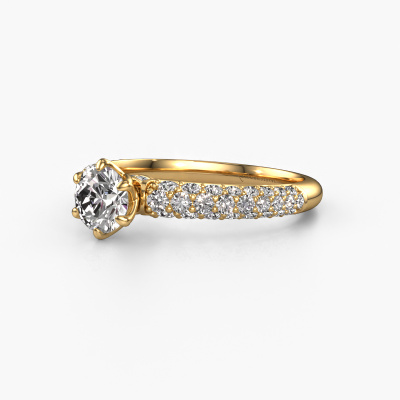 Nous avons donné le nom Meryl à la bague de fiançailles mentionnée ci-dessous. Ce type de bague de fiançailles est appelé une bague de fiançailles solitaire pavé car elle ne comporte qu’une seule pierre centrale et les tiges de la bague de fiançailles ont également une finition pleine. Cette bague de fiançailles est forgée en or 14 Carat et comporte un diamant ronds de 0.60 crt. Des diamants sont sertis dans les épaules latérales de l’anneau. Chaque bijou est faite spécialement pour vous, avec une attention particulière portée aux détails et au design.. Cette bague de fiançailles solitaire pavé forgée en or jaune exclusives a un beau diamant ronds en guise de pierre centrale, avec plus de diamants dans l’anneau pour accentuer encore plus l’effet de la pierre centrale. Le sertissage à griffes autour du diamant étant ouvert, le diamant capte la lumière de tous les côtés et brille de manière optimale. Ci-dessus, vous pouvez voir comment notre orfèvre a travaillé la bague de fiançailles dans les moindres détails. de telle sorte que le diamant élevé puisse véritablement attirer tous les regards. Quelle belle bague de fiançailles à offre lors de votre demande en mariage à l'amour de votre vie, à votre centre rayonnant ! Saviez-vous que nous offrons la garantie du meilleur prix pour votre bague de fiançailles? Cela est possible car tous nos bijoux sont fabriqués à la main dans notre propre atelier. Nous n'avons pas de frais de stocks qui sont coûteux, et nous fabriquons votre bague uniquement une fois que vous l'avez commandée. Grâce au fait que nous ayons toute la production du bijou en main, nous pouvons vous informer sur toutes les caractéristiques de cette bague de fiançailles. C’est précisément parce que l’achat d’une bague en ligne est une expérience excitante que nous comprenons qu’il est plus confortable pour vous de connaître toutes les caractéristiques de votre bague.Avez-vous déjà des bague de fiançailles spécifiques en tête ? Une bague de fiançailles que vous avez vu quelque part. N'hésitez pas à nous faire part de vos souhaits et nous transformerons votre design en des bague de fiançailles uniques. Vous êtes en mesure de suivre l'évolution de la conception de vos bague de fiançailles car nous utilisons des dessins en 3D. Cela vous donnera un aperçu réaliste de votre design. Nous vous enverrons volontiers une offre sans engagement basée sur un rapport qualité / prix juste. Elle va vous étonner.Pour vous faciliter la tâche, vous pouvez facilement nous retourner tout bijou commandé dans les 30 jours suivant la livraison.
