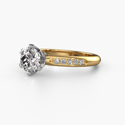 Nous avons donné le nom Tiffy 2 à la bague de fiançailles mentionnée ci-dessous. Ce type de bague de fiançailles est appelé une bague de fiançailles solitaire pavé car elle ne comporte qu’une seule pierre centrale et les tiges de la bague de fiançailles ont également une finition pleine. Cette bague de fiançailles est forgée en or 14 Carat et comporte un diamant ronds de 1.00 crt. Des diamants sont sertis dans les épaules latérales de l’anneau. Chaque bijou est faite pour briller sur votre doigt, chaque bijou est fabriqué à la main par nos orfèvres.. Cette bague de fiançailles solitaire pavé forgée en or jaune traditionnelles a un beau diamant ronds en guise de pierre centrale, avec plus de diamants dans l’anneau pour accentuer encore plus l’effet de la pierre centrale. Le sertissage à griffes autour du diamant étant ouvert, le diamant capte la lumière de tous les côtés et brille de manière optimale. Ci-dessus, vous pouvez voir comment notre orfèvre a travaillé la bague de fiançailles dans les moindres détails. de telle sorte que le diamant élevé puisse véritablement attirer tous les regards. Quelle belle bague de fiançailles à offre lors de votre demande en mariage à l'amour de votre vie, à votre centre rayonnant ! Qu'y a-t-il dorénavant de plus beau qu'une bague de fiançailles traditionnelles conçue par vous-même et fabriquée à la main par nous. Vous pouvez personnaliser chaque modèle avec les différents métaux précieux et pierres précieuses. De cette façon, vous pourrez créer une bague de fiançailles unique. Cette bague peut être mise en place de plusieurs façons. Bien sûr, vous pouvez toujours nous contacter et nous serons heureux de vous aider à composer votre bague de fiançailles traditionnelles Tiffy 2. Vous aimez le design, mais vous souhaitez tout de même quelque chose qui vous convienne plus, ou bien vous souhaitez une pierre précieuse dans les bijoux que vous ne pouvez pas choisir sur notre site, contactez-nous et nous vous aiderons.Notre équipe de designers talentueux et passionnés ajoute chaque jour de nouveaux modèles bague de fiançailles à notre collection en ligne. Notre objectif est de pouvoir vous offrir une grande variété de bijoux. N'hésitez pas à demander un devis si vous avez des souhaits spécifiques pour votre bague de fiançailles. Nous garantissons de vous faire une offre que vous ne pourrez pas refuser.Pour vous faciliter la tâche, vous pouvez facilement nous retourner tout bijou commandé dans les 30 jours suivant la livraison.
