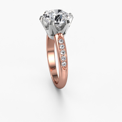 Nous avons donné le nom Tiffy 2 à la bague de fiançailles mentionnée ci-dessous. Ce type de bague de fiançailles est appelé une bague de fiançailles solitaire pavé car elle ne comporte qu’une seule pierre centrale et les tiges de la bague de fiançailles ont également une finition pleine. Cette bague de fiançailles est forgée en or 14 Carat et comporte un diamant ronds de 2.00 crt. Des diamants sont sertis dans les épaules latérales de l’anneau. Chaque bijou est faite pour briller sur votre doigt, chaque bijou est fabriqué à la main par nos orfèvres.. Cette bague de fiançailles solitaire pavé forgée en or rose traditionnelles a un beau diamant ronds en guise de pierre centrale, avec plus de diamants dans l’anneau pour accentuer encore plus l’effet de la pierre centrale. Le sertissage à griffes autour du diamant étant ouvert, le diamant capte la lumière de tous les côtés et brille de manière optimale. Ci-dessus, vous pouvez voir comment notre orfèvre a travaillé la bague de fiançailles dans les moindres détails. de telle sorte que le diamant élevé puisse véritablement attirer tous les regards. Quelle belle bague de fiançailles à offre lors de votre demande en mariage à l'amour de votre vie, à votre centre rayonnant ! Qu'y a-t-il dorénavant de plus beau qu'une bague de fiançailles traditionnelles conçue par vous-même et fabriquée à la main par nous. Vous pouvez personnaliser chaque modèle avec les différents métaux précieux et pierres précieuses. De cette façon, vous pourrez créer une bague de fiançailles unique. Cette bague peut être mise en place de plusieurs façons. Bien sûr, vous pouvez toujours nous contacter et nous serons heureux de vous aider à composer votre bague de fiançailles traditionnelles Tiffy 2. Vous aimez le design, mais vous souhaitez tout de même quelque chose qui vous convienne plus, ou bien vous souhaitez une pierre précieuse dans les bijoux que vous ne pouvez pas choisir sur notre site, contactez-nous et nous vous aiderons.Notre équipe de designers talentueux et passionnés ajoute chaque jour de nouveaux modèles bague de fiançailles à notre collection en ligne. Notre objectif est de pouvoir vous offrir une grande variété de bijoux. N'hésitez pas à demander un devis si vous avez des souhaits spécifiques pour votre bague de fiançailles. Nous garantissons de vous faire une offre que vous ne pourrez pas refuser.Pour vous faciliter la tâche, vous pouvez facilement nous retourner tout bijou commandé dans les 30 jours suivant la livraison.