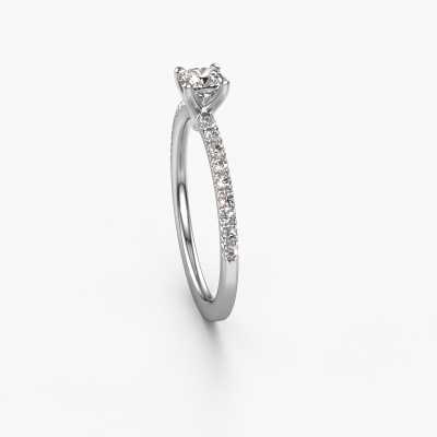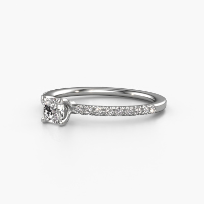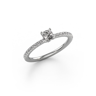 La bague de fiançailles mentionnée ci-dessus a été nommée Crystal CUS 2. Ce type de bague de fiançailles est appelé une bague de fiançailles solitaire pavé car elle ne comporte qu’une seule pierre centrale et les tiges de la bague de fiançailles sont également pleins. La bague de fiançailles est faite dans une combinaison d'or et d’platine et a un diamant coussin d’une de 0.33 crt, et des diamants sont sertis sur les épaules de l’anneau. Chaque bijou est fabriquée spécialement pour vous par nos maîtres orfèvres dans notre propre atelier. Cette bague de fiançailles solitaire pavé forgée en platine classiques a un beau diamants coussin comme pierre centrale, avec plus de diamants sertis dans la bague pour accentuer encore plus la présence de la pierre centrale. Le sertissage à griffes autour du diamant étant ouvert, le diamant capte la lumière de tous les côtés et brille de manière optimale. Ci-dessus, vous pouvez voir comment notre orfèvre travaille la bague de fiançailles avec une extrême précision dans les moindres détails, de telle sorte que le diamant élevé puisse attirer tous les regards. Quelle belle bague de fiançailles à offrir lors de votre demande en mariage à l'amour de votre vie, à votre centre rayonnant ! Nos orfèvres ne fabriqueront votre bague de fiançailles qu'une fois que vous l'aurez commandée. Nous ne faisons pas de stock. L'avantage de cela est que nous n'avons pas à inclure les frais de stockage dans nos prix, et nous pouvons donc vous offrir des bijoux à un prix très bas.Notre équipe ajoute quotidiennement de nouveaux modèles à notre collection en ligne. Nos designers et orfèvres travaillent ensemble pour créer le meilleur design. Nous nous efforçons d'offrir une collection diversifiée de bijoux. Peut-être avez-vous déjà en tête un bijou en particulier ? Un bijou que vous avez trouvé quelque part. Veuillez nous contacter pour une consultation gratuite. Nous vous ferons une offre, basée sur un rapport qualité / prix juste, qui vous déconcertera.Pour vous faciliter la tâche, vous pouvez facilement nous retourner tout bijou commandé dans les 30 jours suivant la livraison.