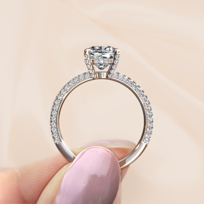 La bague de fiançailles mentionnée ci-dessus a été nommée Saskia 2 CUS. Ce type de bague de fiançailles est appelé une bague de fiançailles solitaire pavé car elle ne comporte qu’une seule pierre centrale et les tiges de la bague de fiançailles sont également pleins. La bague de fiançailles est faite dans une combinaison d'or et d’platine et a un diamant coussin d’une de 2.00 crt, et des diamants synthétiques sont sertis sur les épaules de l’anneau. Chaque bijou est faite spécialement pour vous, avec une attention particulière portée aux détails et au design. Cette bague de fiançailles solitaire pavé forgée en platine contemporains a un beau diamants coussin comme pierre centrale, avec plus de diamants sertis dans la bague pour accentuer encore plus la présence de la pierre centrale. Le sertissage à griffes autour du diamant étant ouvert, le diamant capte la lumière de tous les côtés et brille de manière optimale. Ci-dessus, vous pouvez voir comment notre orfèvre travaille la bague de fiançailles avec une extrême précision dans les moindres détails, de telle sorte que le diamant élevé puisse attirer tous les regards. Quelle belle bague de fiançailles à offrir lors de votre demande en mariage à l'amour de votre vie, à votre centre rayonnant ! Vous avez peut-être remarqué que nos prix sont en moyenne inférieurs de 30% à ceux d'un autre bijoutier. Et ce alors que la qualité de nos bijoux est même plus élevée dans la plupart des cas ! En effet, nos orfèvres fabriquent votre bague de fiançailles directement dans notre propre atelier. Cela signifie que nous n'avons pas à inclure des frais de stocks coûteux et que nous pouvons travailler n'importe quel détail directement sur votre bague de fiançailles.Notre équipe de designers talentueux et passionnés ajoute chaque jour de nouveaux modèles bague de fiançailles à notre collection en ligne. Notre objectif est de pouvoir vous offrir une grande variété de bijoux. N'hésitez pas à demander un devis si vous avez des souhaits spécifiques pour votre bague de fiançailles. Nous garantissons de vous faire une offre que vous ne pourrez pas refuser.Pour vous faciliter la tâche, vous pouvez facilement nous retourner tout bijou commandé dans les 30 jours suivant la livraison.