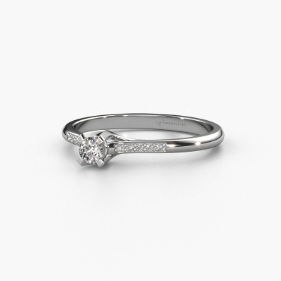 Nous avons donné le nom Isa 2 à la bague de fiançailles mentionnée ci-dessous. Ce type de bague de fiançailles est appelé une bague de fiançailles solitaire pavé car elle ne comporte qu’une seule pierre centrale et les tiges de la bague de fiançailles ont également une finition pleine. Cette bague de fiançailles est forgée en or et comporte un diamant ronds de 0.10 crt. Des diamants sont sertis dans les épaules latérales de l’anneau. Chaque bijou est faite pour briller sur votre doigt, chaque bijou est fabriqué à la main par nos orfèvres.. Cette bague de fiançailles solitaire pavé forgée en platine classiques a un beau diamant ronds en guise de pierre centrale, avec plus de diamants dans l’anneau pour accentuer encore plus l’effet de la pierre centrale. Le sertissage à griffes autour du diamant étant ouvert, le diamant capte la lumière de tous les côtés et brille de manière optimale. Ci-dessus, vous pouvez voir comment notre orfèvre a travaillé la bague de fiançailles dans les moindres détails. de telle sorte que le diamant élevé puisse véritablement attirer tous les regards. Quelle belle bague de fiançailles à offre lors de votre demande en mariage à l'amour de votre vie, à votre centre rayonnant ! Saviez-vous que nous offrons la garantie du meilleur prix pour votre bague de fiançailles? Cela est possible car tous nos bijoux sont fabriqués à la main dans notre propre atelier. Nous n'avons pas de frais de stocks qui sont coûteux, et nous fabriquons votre bague uniquement une fois que vous l'avez commandée. Grâce au fait que nous ayons toute la production du bijou en main, nous pouvons vous informer sur toutes les caractéristiques de cette bague de fiançailles. C’est précisément parce que l’achat d’une bague en ligne est une expérience excitante que nous comprenons qu’il est plus confortable pour vous de connaître toutes les caractéristiques de votre bague.Notre équipe ajoute quotidiennement de nouveaux modèles à notre collection en ligne. Nos designers et orfèvres travaillent ensemble pour créer le meilleur design. Nous nous efforçons d'offrir une collection diversifiée de bijoux. Peut-être avez-vous déjà en tête un bijou en particulier ? Un bijou que vous avez trouvé quelque part. Veuillez nous contacter pour une consultation gratuite. Nous vous ferons une offre, basée sur un rapport qualité / prix juste, qui vous déconcertera.Pour vous faciliter la tâche, vous pouvez facilement nous retourner tout bijou commandé dans les 30 jours suivant la livraison.