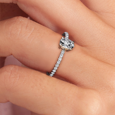 Nous avons donné le nom Lynelle 2 à la bague de fiançailles mentionnée ci-dessous. Ce type de bague de fiançailles est appelé une bague de fiançailles solitaire pavé car elle ne comporte qu’une seule pierre centrale et les tiges de la bague de fiançailles ont également une finition pleine. Cette bague de fiançailles est forgée en or et comporte un diamant ovale de 0.40 crt. Des diamants sont sertis dans les épaules latérales de l’anneau. Chaque bijou est faite pour briller sur votre doigt, chaque bijou est fabriqué à la main par nos orfèvres.. Cette bague de fiançailles solitaire pavé forgée en platine classiques a un beau diamant ovale en guise de pierre centrale, avec plus de diamants dans l’anneau pour accentuer encore plus l’effet de la pierre centrale. Le sertissage à griffes autour du diamant étant ouvert, le diamant capte la lumière de tous les côtés et brille de manière optimale. Ci-dessus, vous pouvez voir comment notre orfèvre a travaillé la bague de fiançailles dans les moindres détails. de telle sorte que le diamant élevé puisse véritablement attirer tous les regards. Quelle belle bague de fiançailles à offre lors de votre demande en mariage à l'amour de votre vie, à votre centre rayonnant ! Nos orfèvres ne fabriqueront votre bague de fiançailles qu'une fois que vous l'aurez commandée. Nous ne faisons pas de stock. L'avantage de cela est que nous n'avons pas à inclure les frais de stockage dans nos prix, et nous pouvons donc vous offrir des bijoux à un prix très bas.Avez-vous déjà des bague de fiançailles spécifiques en tête ? Une bague de fiançailles que vous avez vu quelque part. N'hésitez pas à nous faire part de vos souhaits et nous transformerons votre design en des bague de fiançailles uniques. Vous êtes en mesure de suivre l'évolution de la conception de vos bague de fiançailles car nous utilisons des dessins en 3D. Cela vous donnera un aperçu réaliste de votre design. Nous vous enverrons volontiers une offre sans engagement basée sur un rapport qualité / prix juste. Elle va vous étonner.Pour vous faciliter la tâche, vous pouvez facilement nous retourner tout bijou commandé dans les 30 jours suivant la livraison.