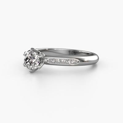 Nous avons donné le nom Tiffy 2 à la bague de fiançailles mentionnée ci-dessous. Ce type de bague de fiançailles est appelé une bague de fiançailles solitaire pavé car elle ne comporte qu’une seule pierre centrale et les tiges de la bague de fiançailles ont également une finition pleine. Cette bague de fiançailles est forgée en or et comporte un diamant ronds de 0.50 crt. Des diamants sont sertis dans les épaules latérales de l’anneau. Chaque bijou est faite pour briller sur votre doigt, chaque bijou est fabriqué à la main par nos orfèvres.. Cette bague de fiançailles solitaire pavé forgée en platine traditionnelles a un beau diamant ronds en guise de pierre centrale, avec plus de diamants dans l’anneau pour accentuer encore plus l’effet de la pierre centrale. Le sertissage à griffes autour du diamant étant ouvert, le diamant capte la lumière de tous les côtés et brille de manière optimale. Ci-dessus, vous pouvez voir comment notre orfèvre a travaillé la bague de fiançailles dans les moindres détails. de telle sorte que le diamant élevé puisse véritablement attirer tous les regards. Quelle belle bague de fiançailles à offre lors de votre demande en mariage à l'amour de votre vie, à votre centre rayonnant ! Qu'y a-t-il dorénavant de plus beau qu'une bague de fiançailles traditionnelles conçue par vous-même et fabriquée à la main par nous. Vous pouvez personnaliser chaque modèle avec les différents métaux précieux et pierres précieuses. De cette façon, vous pourrez créer une bague de fiançailles unique. Cette bague peut être mise en place de plusieurs façons. Bien sûr, vous pouvez toujours nous contacter et nous serons heureux de vous aider à composer votre bague de fiançailles traditionnelles Tiffy 2. Vous aimez le design, mais vous souhaitez tout de même quelque chose qui vous convienne plus, ou bien vous souhaitez une pierre précieuse dans les bijoux que vous ne pouvez pas choisir sur notre site, contactez-nous et nous vous aiderons.Notre équipe de designers talentueux et passionnés ajoute chaque jour de nouveaux modèles bague de fiançailles à notre collection en ligne. Notre objectif est de pouvoir vous offrir une grande variété de bijoux. N'hésitez pas à demander un devis si vous avez des souhaits spécifiques pour votre bague de fiançailles. Nous garantissons de vous faire une offre que vous ne pourrez pas refuser.Pour vous faciliter la tâche, vous pouvez facilement nous retourner tout bijou commandé dans les 30 jours suivant la livraison.
