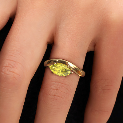 Cette bague de fiançailles porte le nom Floor MRQ. Cette bague de fiançailles forgée en or 14 Carat est sertie d’un diamants synthétiques jaune de 11x5.5 mm. Qu'est-ce qui rend votre relation unique ? Qu'est-ce que qui fait que vous souhaitiez