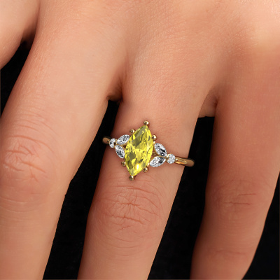 Nous avons donné le nom Megan MRQ à la bague de fiançailles mentionnée ci-dessous. Ce type de bague de fiançailles est appelé une bague de fiançailles solitaire pavé car elle ne comporte qu’une seule pierre centrale et les tiges de la bague de fiançailles ont également une finition pleine. Cette bague de fiançailles est forgée en or 14 Carat et comporte un diamants synthétiques jaune marquise de 11x5.5 mm. Des diamants synthétiques sont sertis dans les épaules latérales de l’anneau. Chaque bijou est faite avec passion et amour par l'un de nos maîtres orfèvres.. Cette bague de fiançailles solitaire pavé forgée en or jaune fantaisie a un beau diamants synthétiques jaune marquise en guise de pierre centrale, avec plus de diamants synthétiques dans l’anneau pour accentuer encore plus l’effet de la pierre centrale. Le sertissage à griffes autour du diamants synthétiques jaune étant ouvert, le diamants synthétiques jaune capte la lumière de tous les côtés et brille de manière optimale. Ci-dessus, vous pouvez voir comment notre orfèvre a travaillé la bague de fiançailles dans les moindres détails. de telle sorte que le diamants synthétiques jaune élevé puisse véritablement attirer tous les regards. Quelle belle bague de fiançailles à offre lors de votre demande en mariage à l'amour de votre vie, à votre centre rayonnant ! [bestp1v_long]Avez-vous déjà des bague de fiançailles spécifiques en tête ? Une bague de fiançailles que vous avez vu quelque part. N'hésitez pas à nous faire part de vos souhaits et nous transformerons votre design en des bague de fiançailles uniques. Vous êtes en mesure de suivre l'évolution de la conception de vos bague de fiançailles car nous utilisons des dessins en 3D. Cela vous donnera un aperçu réaliste de votre design. Nous vous enverrons volontiers une offre sans engagement basée sur un rapport qualité / prix juste. Elle va vous étonner.Pour vous faciliter la tâche, vous pouvez facilement nous retourner tout bijou commandé dans les 30 jours suivant la livraison.