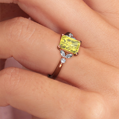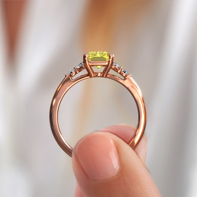 Nous avons donné le nom Megan RAD à la bague de fiançailles mentionnée ci-dessous. Ce type de bague de fiançailles est appelé une bague de fiançailles solitaire pavé car elle ne comporte qu’une seule pierre centrale et les tiges de la bague de fiançailles ont également une finition pleine. Cette bague de fiançailles est forgée en or 14 Carat et comporte un diamants synthétiques jaune radiant de 7.5x5.5 mm. Des diamants synthétiques sont sertis dans les épaules latérales de l’anneau. Chaque bijou est faite avec passion et amour par l'un de nos maîtres orfèvres.. Cette bague de fiançailles solitaire pavé forgée en or rose traditionnelles a un beau diamants synthétiques jaune radiant en guise de pierre centrale, avec plus de diamants synthétiques dans l’anneau pour accentuer encore plus l’effet de la pierre centrale. Le sertissage à griffes autour du diamants synthétiques jaune étant ouvert, le diamants synthétiques jaune capte la lumière de tous les côtés et brille de manière optimale. Ci-dessus, vous pouvez voir comment notre orfèvre a travaillé la bague de fiançailles dans les moindres détails. de telle sorte que le diamants synthétiques jaune élevé puisse véritablement attirer tous les regards. Quelle belle bague de fiançailles à offre lors de votre demande en mariage à l'amour de votre vie, à votre centre rayonnant ! Qu'y a-t-il dorénavant de plus beau qu'une bague de fiançailles traditionnelles conçue par vous-même et fabriquée à la main par nous. Vous pouvez personnaliser chaque modèle avec les différents métaux précieux et pierres précieuses. De cette façon, vous pourrez créer une bague de fiançailles unique. Cette bague peut être mise en place de plusieurs façons. Bien sûr, vous pouvez toujours nous contacter et nous serons heureux de vous aider à composer votre bague de fiançailles traditionnelles Megan RAD. Vous aimez le design, mais vous souhaitez tout de même quelque chose qui vous convienne plus, ou bien vous souhaitez une pierre précieuse dans les bijoux que vous ne pouvez pas choisir sur notre site, contactez-nous et nous vous aiderons.Notre équipe ajoute quotidiennement de nouveaux modèles à notre collection en ligne. Nos designers et orfèvres travaillent ensemble pour créer le meilleur design. Nous nous efforçons d'offrir une collection diversifiée de bijoux. Peut-être avez-vous déjà en tête un bijou en particulier ? Un bijou que vous avez trouvé quelque part. Veuillez nous contacter pour une consultation gratuite. Nous vous ferons une offre, basée sur un rapport qualité / prix juste, qui vous déconcertera.Pour vous faciliter la tâche, vous pouvez facilement nous retourner tout bijou commandé dans les 30 jours suivant la livraison.