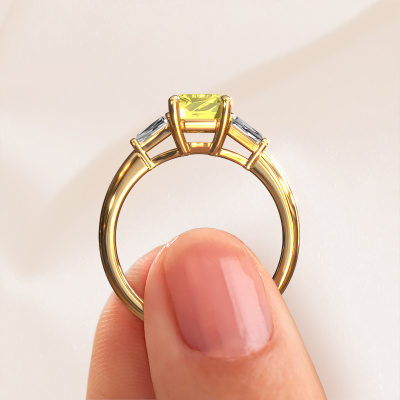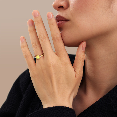 Le nom de cette bague de fiançailles est Kina EME. Elle est forgée en or 14 Carat et est sertie d'un diamants synthétiques jaune de 8x6 mm. Comment décririez-vous le style de l'amour de votre vie ? Est-ce qu'elle aime quelque chose qui est juste un peu plus différent que d'habitude ? Cette bague de fiançailles forgée en or jaune avec spéciales est une superbe bague que vous pouvez personnaliser à votre guise. Un diamants synthétiques jaune est utilisé dans cette bague de fiançailles exclusives. Ces diamants synthétiques jaune ont été sélectionnés avec soin, car nous pensons que sur votre bague de fiançailles, seule les plus belle pierre précieuses peuvent y briller, n'est-ce pas ? Ce bijou est fabriquée par une équipe d'orfèvres et de designers motivés. Cela permettra à cette pièce unique d'attirer tous les regards.Vous avez peut-être remarqué que nos prix sont en moyenne inférieurs de 30% à ceux d'un autre bijoutier. Et ce alors que la qualité de nos bijoux est même plus élevée dans la plupart des cas ! En effet, nos orfèvres fabriquent votre bague de fiançailles directement dans notre propre atelier. Cela signifie que nous n'avons pas à inclure des frais de stocks coûteux et que nous pouvons travailler n'importe quel détail directement sur votre bague de fiançailles. Avez-vous déjà des bague de fiançailles spécifiques en tête ? Une bague de fiançailles que vous avez vu quelque part. N'hésitez pas à nous faire part de vos souhaits et nous transformerons votre design en des bague de fiançailles uniques. Vous êtes en mesure de suivre l'évolution de la conception de vos bague de fiançailles car nous utilisons des dessins en 3D. Cela vous donnera un aperçu réaliste de votre design. Nous vous enverrons volontiers une offre sans engagement basée sur un rapport qualité / prix juste. Elle va vous étonner.Pour vous faciliter la tâche, vous pouvez facilement nous retourner tout bijou commandé dans les 30 jours suivant la livraison.