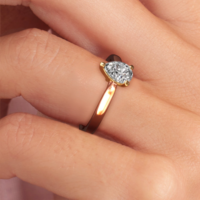 Nous avons donné le nom Mignon per 1 à la bague de fiançailles mentionnée ci-dessous. Ce type de bague de fiançailles est appelée une bague de fiançailles solitaire car elle ne contient qu’une seule pierre précieuse. La bague de fiançailles est forgée en or 14 Carat et comporte un diamant synthétique poire d’une de 0.65 crt. L’avantage de notre outil de configuration est que vous pouvez choisir les éléments de votre propres bijou pour créer vous-même votre propre bijou. Cette bague de fiançailles solitaire est faite à partir d’une combinaison de métal précieux d’or et d’or jaune, mais vous pouvez également choisir un or d’une autre couleur. Chaque bijou est faite pour briller sur votre doigt, chaque bijou est fabriqué à la main par nos orfèvres. La bague de fiançailles solitaire est une large bague de fiançailles. C'est précisément grâce au fait que le sertissage de chaton soit ouvert que l'incidence de la lumière crée un effet magnifique sur la pierre précieuse. Puisque la pierre précieuse choisie est sertie en élévation sur la bague de fiançailles, cette bague de fiançailles classiques attirera tous les regards une loyautés finie. Nous fabriquerons tous les détails de cette bague de fiançailles solitaire avec le plus grand soin, afin que vous puissiez bientôt couronner votre demande en mariage avec une bague unique, en particulier pour l'amour de votre vie ! Nos orfèvres ne fabriqueront votre bague de fiançailles qu'une fois que vous l'aurez commandée. Nous ne faisons pas de stock. L'avantage de cela est que nous n'avons pas à inclure les frais de stockage dans nos prix, et nous pouvons donc vous offrir des bijoux à un prix très bas.Notre équipe ajoute quotidiennement de nouveaux modèles à notre collection en ligne. Nos designers et orfèvres travaillent ensemble pour créer le meilleur design. Nous nous efforçons d'offrir une collection diversifiée de bijoux. Peut-être avez-vous déjà en tête un bijou en particulier ? Un bijou que vous avez trouvé quelque part. Veuillez nous contacter pour une consultation gratuite. Nous vous ferons une offre, basée sur un rapport qualité / prix juste, qui vous déconcertera.Pour vous faciliter la tâche, vous pouvez facilement nous retourner tout bijou commandé dans les 30 jours suivant la livraison.