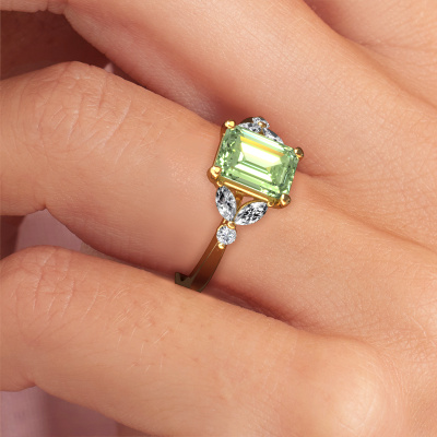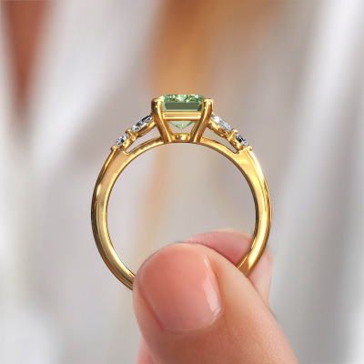Cette bague de fiançailles porte le nom Megan EME. Cette bague de fiançailles forgée en or 14 Carat est sertie d’un diamants synthétiques vert de 8x6 mm. Qu'est-ce qui rend votre relation unique ? Qu'est-ce que qui fait que vous souhaitiez qu’elle devienne votre femmes ? Cet anneau unique que vous avez ensemble peut être reflété dans une bague unique. Une bague de fiançailles solitaire pavé unique qui est seulement créée pour elle. Et c'est la raison pour laquelle cette bague de fiançailles lui ira parfaitement. Chaque détail de cette bague de fiançailles ci-dessous forgée en or jaune sertie d’un diamants synthétiques vert est composée, travaillée et polie à la main par notre orfèvre dans notre atelier. Le résultat final est une magnifique bague de fiançailles, unique et parfaitement forgée dans les moindres détails ! Ce résultat est ce que nos orfèvres recherchent à tout prix ! Ce bijou est faite pour briller sur votre doigt, chaque bijou est fabriqué à la main par nos orfèvres.Saviez-vous que nous offrons la garantie du meilleur prix pour votre bague de fiançailles? Cela est possible car tous nos bijoux sont fabriqués à la main dans notre propre atelier. Nous n'avons pas de frais de stocks qui sont coûteux, et nous fabriquons votre bague uniquement une fois que vous l'avez commandée. Grâce au fait que nous ayons toute la production du bijou en main, nous pouvons vous informer sur toutes les caractéristiques de cette bague de fiançailles. C’est précisément parce que l’achat d’une bague en ligne est une expérience excitante que nous comprenons qu’il est plus confortable pour vous de connaître toutes les caractéristiques de votre bague.Notre équipe ajoute quotidiennement de nouveaux modèles à notre collection en ligne. Nos designers et orfèvres travaillent ensemble pour créer le meilleur design. Nous nous efforçons d'offrir une collection diversifiée de bijoux. Peut-être avez-vous déjà en tête un bijou en particulier ? Un bijou que vous avez trouvé quelque part. Veuillez nous contacter pour une consultation gratuite. Nous vous ferons une offre, basée sur un rapport qualité / prix juste, qui vous déconcertera.Pour vous faciliter la tâche, vous pouvez facilement nous retourner tout bijou commandé dans les 30 jours suivant la livraison.