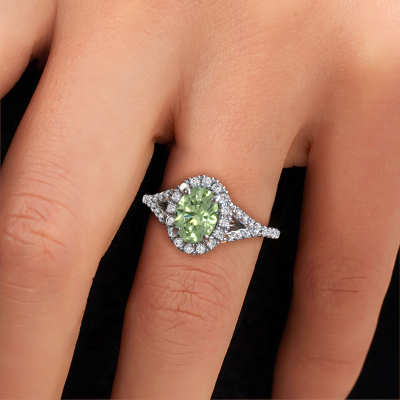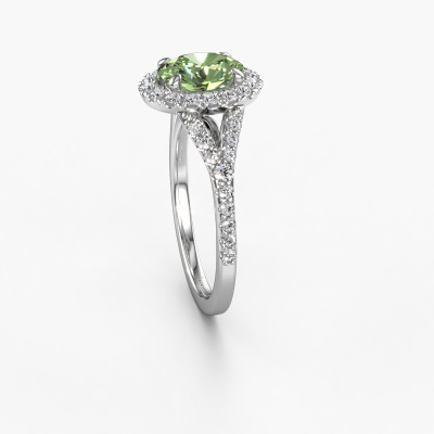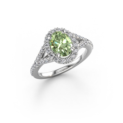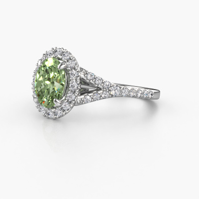 La bague de fiançailles mentionnée ci-dessus a été nommée Kimber OVL. Ce type de bague de fiançailles est appelé une bague de fiançailles solitaire pavé car elle ne comporte qu’une seule pierre centrale et les tiges de la bague de fiançailles sont également pleins. La bague de fiançailles est faite dans une combinaison d'or et d’platine et a un diamants synthétiques vert ovale d’une de 8x6 mm, et des diamants synthétiques sont sertis sur les épaules de l’anneau. Chaque bijou est faite avec passion et amour par l'un de nos maîtres orfèvres. Cette bague de fiançailles solitaire pavé forgée en platine exclusives a un beau diamants synthétiques vert ovale comme pierre centrale, avec plus de diamants synthétiques vert sertis dans la bague pour accentuer encore plus la présence de la pierre centrale. Le sertissage à griffes autour du diamants synthétiques vert étant ouvert, le diamants synthétiques vert capte la lumière de tous les côtés et brille de manière optimale. Ci-dessus, vous pouvez voir comment notre orfèvre travaille la bague de fiançailles avec une extrême précision dans les moindres détails, de telle sorte que le diamants synthétiques vert élevé puisse attirer tous les regards. Quelle belle bague de fiançailles à offrir lors de votre demande en mariage à l'amour de votre vie, à votre centre rayonnant ! En combinant les dernières techniques modernes, associées à une fabrication ancienne, nous sommes en mesure de fabriquer nos bagues de fiançailles dans notre propre studio. Chaque bijou est fabriqué sur commande. Ceci est avantageux car nous sommes en mesure de vous proposer un prix que vous ne trouverez nulle part ailleurs.Notre équipe ajoute quotidiennement de nouveaux modèles à notre collection en ligne. Nos designers et orfèvres travaillent ensemble pour créer le meilleur design. Nous nous efforçons d'offrir une collection diversifiée de bijoux. Peut-être avez-vous déjà en tête un bijou en particulier ? Un bijou que vous avez trouvé quelque part. Veuillez nous contacter pour une consultation gratuite. Nous vous ferons une offre, basée sur un rapport qualité / prix juste, qui vous déconcertera.Pour vous faciliter la tâche, vous pouvez facilement nous retourner tout bijou commandé dans les 30 jours suivant la livraison.