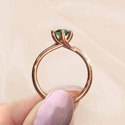 Il n'y en a qu'une pour vous ! Elle est rare, unique et pure... Cette large bague de fiançailles solitaire forgée en or rose avec un emeraude représente magnifiquement toutes ces caractéristiques. Ce emeraude a été soigneusement sélectionné par nos orfèvres et est, tout comme votre bien-aimée, unique. Quoi de plus beau de lui offrir ce symbole avec votre demande en mariage Nous avons donné le nom Dewi Oval à la bague de fiançailles mentionnée ci-dessous. Ce type de bague de fiançailles est appelée une bague de fiançailles solitaire car elle ne contient qu’une seule pierre précieuse. La bague de fiançailles est forgée en or 14 Carat et comporte un emeraude ovale d’une de 7x5 mm. Chaque bijou est faite avec passion et amour par l'un de nos maîtres orfèvres.Vous avez peut-être remarqué que nos prix sont en moyenne inférieurs de 30% à ceux d'un autre bijoutier. Et ce alors que la qualité de nos bijoux est même plus élevée dans la plupart des cas ! En effet, nos orfèvres fabriquent votre bague de fiançailles directement dans notre propre atelier. Cela signifie que nous n'avons pas à inclure des frais de stocks coûteux et que nous pouvons travailler n'importe quel détail directement sur votre bague de fiançailles.Avez-vous déjà des bague de fiançailles spécifiques en tête ? Une bague de fiançailles que vous avez vu quelque part. N'hésitez pas à nous faire part de vos souhaits et nous transformerons votre design en des bague de fiançailles uniques. Vous êtes en mesure de suivre l'évolution de la conception de vos bague de fiançailles car nous utilisons des dessins en 3D. Cela vous donnera un aperçu réaliste de votre design. Nous vous enverrons volontiers une offre sans engagement basée sur un rapport qualité / prix juste. Elle va vous étonner.Pour vous faciliter la tâche, vous pouvez facilement nous retourner tout bijou commandé dans les 30 jours suivant la livraison.