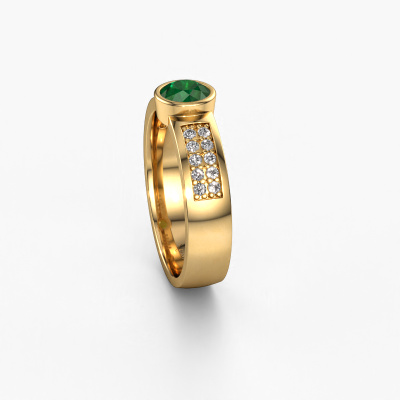La bague de fiançailles mentionnée ci-dessus a été nommée Ise 3. Ce type de bague de fiançailles est appelé une bague de fiançailles solitaire pavé car elle ne comporte qu’une seule pierre centrale et les tiges de la bague de fiançailles sont également pleins. La bague de fiançailles est faite dans une combinaison d'or 14 Carat et d’or jaune et a un emeraude ronds d’une de 4.7 mm, et des diamants sont sertis sur les épaules de l’anneau. Chaque bijou est fabriquée spécialement pour vous par nos maîtres orfèvres dans notre propre atelier. Cette bague de fiançailles solitaire pavé forgée en or jaune modernes a un beau émeraudes ronds comme pierre centrale, avec plus de émeraudes sertis dans la bague pour accentuer encore plus la présence de la pierre centrale. Le sertissage à griffes autour du emeraude étant ouvert, le emeraude capte la lumière de tous les côtés et brille de manière optimale. Ci-dessus, vous pouvez voir comment notre orfèvre travaille la bague de fiançailles avec une extrême précision dans les moindres détails, de telle sorte que le emeraude élevé puisse attirer tous les regards. Quelle belle bague de fiançailles à offrir lors de votre demande en mariage à l'amour de votre vie, à votre centre rayonnant ! Puisque nous concevons et livrons nos propres bijoux, nous sommes en mesure de vous proposer une bague de fiançailles à un prix que vous ne pourrez pas trouver ailleurs. Une alliance est fabriquée sur commande, ce qui permet d'éviter les excédents de matériel et nous permet de vous proposer une superbe offre de prix. Nous comprenons qu'acheter votre bague de fiançailles en ligne soit un risque, mais nous vous assistons volontiers dans le processus de conception, en tenant compte de votre budget.Notre équipe ajoute quotidiennement de nouveaux modèles à notre collection en ligne. Nos designers et orfèvres travaillent ensemble pour créer le meilleur design. Nous nous efforçons d'offrir une collection diversifiée de bijoux. Peut-être avez-vous déjà en tête un bijou en particulier ? Un bijou que vous avez trouvé quelque part. Veuillez nous contacter pour une consultation gratuite. Nous vous ferons une offre, basée sur un rapport qualité / prix juste, qui vous déconcertera.Pour vous faciliter la tâche, vous pouvez facilement nous retourner tout bijou commandé dans les 30 jours suivant la livraison.