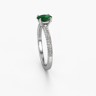 Nous avons donné le nom Elenore ovl à la bague de fiançailles mentionnée ci-dessous. Ce type de bague de fiançailles est appelé une bague de fiançailles solitaire pavé car elle ne comporte qu’une seule pierre centrale et les tiges de la bague de fiançailles ont également une finition pleine. Cette bague de fiançailles est forgée en or et comporte un emeraude ovale de 6.5x4.5 mm. Des diamants sont sertis dans les épaules latérales de l’anneau. Chaque bijou est fabriquée par une équipe d'orfèvres et de designers motivés. Cela permettra à cette pièce unique d'attirer tous les regards.. Cette bague de fiançailles solitaire pavé forgée en platine exclusives a un beau emeraude ovale en guise de pierre centrale, avec plus de diamants dans l’anneau pour accentuer encore plus l’effet de la pierre centrale. Le sertissage à griffes autour du emeraude étant ouvert, le emeraude capte la lumière de tous les côtés et brille de manière optimale. Ci-dessus, vous pouvez voir comment notre orfèvre a travaillé la bague de fiançailles dans les moindres détails. de telle sorte que le emeraude élevé puisse véritablement attirer tous les regards. Quelle belle bague de fiançailles à offre lors de votre demande en mariage à l'amour de votre vie, à votre centre rayonnant ! Nos orfèvres ne fabriqueront votre bague de fiançailles qu'une fois que vous l'aurez commandée. Nous ne faisons pas de stock. L'avantage de cela est que nous n'avons pas à inclure les frais de stockage dans nos prix, et nous pouvons donc vous offrir des bijoux à un prix très bas.Avez-vous déjà des bague de fiançailles spécifiques en tête ? Une bague de fiançailles que vous avez vu quelque part. N'hésitez pas à nous faire part de vos souhaits et nous transformerons votre design en des bague de fiançailles uniques. Vous êtes en mesure de suivre l'évolution de la conception de vos bague de fiançailles car nous utilisons des dessins en 3D. Cela vous donnera un aperçu réaliste de votre design. Nous vous enverrons volontiers une offre sans engagement basée sur un rapport qualité / prix juste. Elle va vous étonner.Pour vous faciliter la tâche, vous pouvez facilement nous retourner tout bijou commandé dans les 30 jours suivant la livraison.