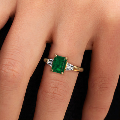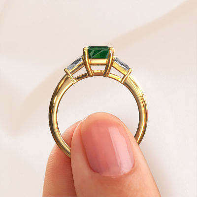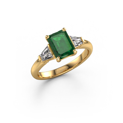 Le nom de cette bague de fiançailles est Kina EME. Elle est forgée en or 14 Carat et est sertie d'un emeraude de 8x6 mm. Comment décririez-vous le style de l'amour de votre vie ? Est-ce qu'elle aime quelque chose qui est juste un peu plus différent que d'habitude ? Cette bague de fiançailles forgée en or jaune avec spéciales est une superbe bague que vous pouvez personnaliser à votre guise. Un emeraude est utilisé dans cette bague de fiançailles exclusives. Ces émeraudes ont été sélectionnés avec soin, car nous pensons que sur votre bague de fiançailles, seule les plus belle pierre précieuses peuvent y briller, n'est-ce pas ? Ce bijou est fabriquée par une équipe d'orfèvres et de designers motivés. Cela permettra à cette pièce unique d'attirer tous les regards.Vous avez peut-être remarqué que nos prix sont en moyenne inférieurs de 30% à ceux d'un autre bijoutier. Et ce alors que la qualité de nos bijoux est même plus élevée dans la plupart des cas ! En effet, nos orfèvres fabriquent votre bague de fiançailles directement dans notre propre atelier. Cela signifie que nous n'avons pas à inclure des frais de stocks coûteux et que nous pouvons travailler n'importe quel détail directement sur votre bague de fiançailles. Avez-vous déjà des bague de fiançailles spécifiques en tête ? Une bague de fiançailles que vous avez vu quelque part. N'hésitez pas à nous faire part de vos souhaits et nous transformerons votre design en des bague de fiançailles uniques. Vous êtes en mesure de suivre l'évolution de la conception de vos bague de fiançailles car nous utilisons des dessins en 3D. Cela vous donnera un aperçu réaliste de votre design. Nous vous enverrons volontiers une offre sans engagement basée sur un rapport qualité / prix juste. Elle va vous étonner.Pour vous faciliter la tâche, vous pouvez facilement nous retourner tout bijou commandé dans les 30 jours suivant la livraison.