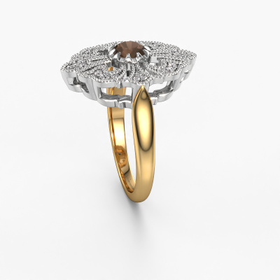 Nous avons donné le nom Naida à cette bague de fiançailles. Cette bague de fiançailles gracieuses forgée en or 14 Carat est sertie d’un quartz fumé de 5 mm. Votre petite amie a-t-elle un faible pour le vintage ? Vous pouvez donc être sûr que cette bague de fiançailles forgée en or jaune conviendra à son style ! Un nouveau modèle basé sur des motifs vintage. Un peu de rêve, un beau design, surtout si vous l’ajustez encore plus à votre goût. De magnifiques quartz fumé ont été sertis sur cette bague de fiançailles entourage vintage. Comme vous pouvez le constater, vous pouvez choisir vous-même une pierre précieuse qui convient à votre petite amie. Chaque pierre précieuse est soigneusement sélectionnée par nos commerçants du monde entier. Notre orfèvre ne veut travailler que les plus belles pierres précieuses sur votre bijou. Après tout, c'est la couronne de son travail ! Chaque bijou est fabriquée spécialement pour vous par nos maîtres orfèvres dans notre propre atelier.En combinant les dernières techniques modernes, associées à une fabrication ancienne, nous sommes en mesure de fabriquer nos bagues de fiançailles dans notre propre studio. Chaque bijou est fabriqué sur commande. Ceci est avantageux car nous sommes en mesure de vous proposer un prix que vous ne trouverez nulle part ailleurs.Avez-vous déjà des bague de fiançailles spécifiques en tête ? Une bague de fiançailles que vous avez vu quelque part. N'hésitez pas à nous faire part de vos souhaits et nous transformerons votre design en des bague de fiançailles uniques. Vous êtes en mesure de suivre l'évolution de la conception de vos bague de fiançailles car nous utilisons des dessins en 3D. Cela vous donnera un aperçu réaliste de votre design. Nous vous enverrons volontiers une offre sans engagement basée sur un rapport qualité / prix juste. Elle va vous étonner.Pour vous faciliter la tâche, vous pouvez facilement nous retourner tout bijou commandé dans les 30 jours suivant la livraison.