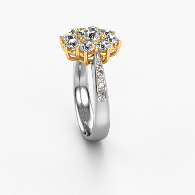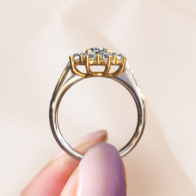 La bague de fiançailles présentée ci-dessus a été nommée Carolyn 2. Nous appelons ce type de bague de fiançailles une bague entourage. Ici, de petites pierres précieuses sont serties autour de la pierre centrale dans un sertissage ouvert. Cette bague de fiançailles forgée en or 14 Carat a un diamant ronds de 0.50 crt en guise de pierre centrale qui est aussi entourée de petits diamants. Les petites pierres précieuses qui sont serties autour du large diamant sous la forme d’une belle fleur rendent cette bague de fiançailles entourage forgée en or blanc traditionnelles si spéciale. Ils donnent l'effet de former une grosse pierre précieuse étincelante. Cette bague de fiançailles peut aussi avoir un autre nom tel que bague fleur ou la bague rosette. Cependant, ces petits diamants doivent tous être sertis de la même manière, afin que la lumière pénétrant dans le diamant ne soit pas interrompue et qu'une belle unité soit effectivement créée. Voici donc le travail de nos maîtres orfèvres. Avec la plus grande précision, chaque diamant soigneusement sélectionné est serti à la main dans la bague de fiançailles. Toujours et encore, la bague de fiançailles est examinée sous la lumière pour voir si l'effet spécial désiré est encore visible. Le résultat est donc une bague de fiançailles unique, où le diamant choisi devient littéralement le centre brillants. Vous pouvez imaginer que cette bague de fiançailles est vraiment une bague de fiançailles significative à offrir à votre amour de votre vie ! Le jour où vous lui montrerez qu'elle est le centre brillants de votre vie ! Ce bijou est unique car vous pouvez entièrement l'assembler à votre guise.Vous avez peut-être remarqué que nos prix sont en moyenne inférieurs de 30% à ceux d'un autre bijoutier. Et ce alors que la qualité de nos bijoux est même plus élevée dans la plupart des cas ! En effet, nos orfèvres fabriquent votre bague de fiançailles directement dans notre propre atelier. Cela signifie que nous n'avons pas à inclure des frais de stocks coûteux et que nous pouvons travailler n'importe quel détail directement sur votre bague de fiançailles.Notre équipe ajoute quotidiennement de nouveaux modèles à notre collection en ligne. Nos designers et orfèvres travaillent ensemble pour créer le meilleur design. Nous nous efforçons d'offrir une collection diversifiée de bijoux. Peut-être avez-vous déjà en tête un bijou en particulier ? Un bijou que vous avez trouvé quelque part. Veuillez nous contacter pour une consultation gratuite. Nous vous ferons une offre, basée sur un rapport qualité / prix juste, qui vous déconcertera.Pour vous faciliter la tâche, vous pouvez facilement nous retourner tout bijou commandé dans les 30 jours suivant la livraison.