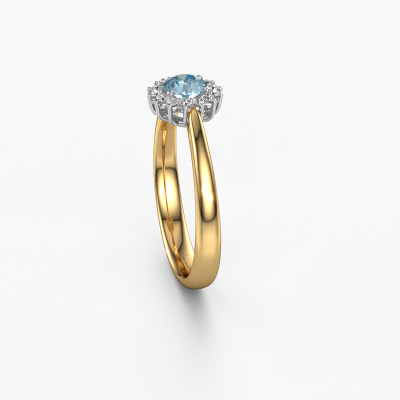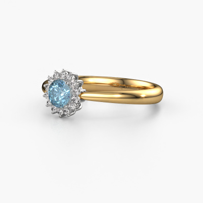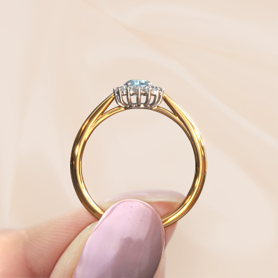 La bague de fiançailles présentée ci-dessus a été nommée Tilly RND 1. Nous appelons ce type de bague de fiançailles une bague entourage. Ici, de petites pierres précieuses sont serties autour de la pierre centrale dans un sertissage ouvert. Cette bague de fiançailles forgée en or 14 Carat a un diamant synthétique bleu ronds de 4.2 mm en guise de pierre centrale qui est aussi entourée de petits diamants. Les petites pierres précieuses qui sont serties autour du large diamant synthétique bleu sous la forme d’une belle fleur rendent cette bague de fiançailles entourage forgée en or jaune classiques si spéciale. Ils donnent l'effet de former une grosse pierre précieuse étincelante. Cette bague de fiançailles peut aussi avoir un autre nom tel que bague fleur ou la bague rosette. Cependant, ces petits diamant synthétique bleu doivent tous être sertis de la même manière, afin que la lumière pénétrant dans le diamant synthétique bleu ne soit pas interrompue et qu'une belle unité soit effectivement créée. Voici donc le travail de nos maîtres orfèvres. Avec la plus grande précision, chaque diamant synthétique bleu soigneusement sélectionné est serti à la main dans la bague de fiançailles. Toujours et encore, la bague de fiançailles est examinée sous la lumière pour voir si l'effet spécial désiré est encore visible. Le résultat est donc une bague de fiançailles unique, où le diamant synthétique bleu choisi devient littéralement le centre brillants. Vous pouvez imaginer que cette bague de fiançailles est vraiment une bague de fiançailles significative à offrir à votre amour de votre vie ! Le jour où vous lui montrerez qu'elle est le centre brillants de votre vie ! Ce bijou est fabriquées avec passion et amour par l'un de nos maîtres orfèvres.