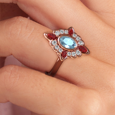 Nous avons donné le nom Door à cette bague de fiançailles. Cette bague forgée en or 14 Carat est sertie d’un diamant synthétique bleu de 7x5 mm. Cette bague est une large bague vintage forgée en or rose unique qui fera certainement briller l’amour de votre vie ! Et c'est exactement ce que nous avons comme objectif. Un beau diamant synthétique bleu est serti dans cette bague de fiançailles vintage. Vous pouvez, bien entendu, utiliser chaque pierre précieuses que nous proposons sur notre site La pierre précieuse sera sélectionnée avec soin, car nous pensons que seule la plus belle des pierres précieuses peut briller sur votre bague de fiançailles osés, qu’en dites-vous ? Notre orfèvre fabrique votre bague de fiançailles dans notre propre atelier et place le diamant synthétique bleu dans l'anneau de la bague avec une précision extrême. Donc, elle est travaillée et polie jusqu'à ce que le résultat désiré soit visible : la bague de fiançailles parfaite pour l'amour de votre vie ! Ce bijou est fabriquée spécialement pour vous par nos maîtres orfèvres dans notre propre atelier.Saviez-vous que nous offrons la garantie du meilleur prix pour votre bague de fiançailles? Cela est possible car tous nos bijoux sont fabriqués à la main dans notre propre atelier. Nous n'avons pas de frais de stocks qui sont coûteux, et nous fabriquons votre bague uniquement une fois que vous l'avez commandée. Grâce au fait que nous ayons toute la production du bijou en main, nous pouvons vous informer sur toutes les caractéristiques de cette bague de fiançailles. C’est précisément parce que l’achat d’une bague en ligne est une expérience excitante que nous comprenons qu’il est plus confortable pour vous de connaître toutes les caractéristiques de votre bague.Notre équipe ajoute quotidiennement de nouveaux modèles à notre collection en ligne. Nos designers et orfèvres travaillent ensemble pour créer le meilleur design. Nous nous efforçons d'offrir une collection diversifiée de bijoux. Peut-être avez-vous déjà en tête un bijou en particulier ? Un bijou que vous avez trouvé quelque part. Veuillez nous contacter pour une consultation gratuite. Nous vous ferons une offre, basée sur un rapport qualité / prix juste, qui vous déconcertera.Pour vous faciliter la tâche, vous pouvez facilement nous retourner tout bijou commandé dans les 30 jours suivant la livraison.
