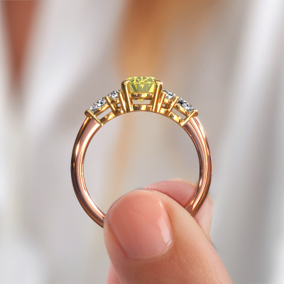Cette bague de fiançailles porte le nom Melani OVL. Cette bague de fiançailles élégants est forgée en or 14 Carat et est sertie d’un diamants synthétiques jaune de 8x6 mm. Cette bague de fiançailles entourage et forgée en or rose unique est un pur travail d’art ! Tous les petits détails ont été fabriqués avec beaucoup de patience et de passion par notre orfèvre. Ce métier nécessite un œil expert et une main habile pour assembler cette bague de fiançailles avec la plus grande précision. Et ce travail est précisément ce qui enthousiasme nos orfèvres ! Les plus beaux diamants synthétiques jaune sont sertis de manière large, de telle sorte qu'ils puissent rendre un effet encore meilleurs. Cela donne donc une allure supplémentaire à la bague de fiançailles. La bague de fiançailles est unique en raison de sa pierre précieuse naturelle, que nous avons spécialement sélectionnée pour cette bague. De plus, vous pouvez choisir vous-même la composition du métal précieux de votre bague. Vous aurez donc créé une bague de fiançailles unique pour la femmes la plus unique de votre vie ! Ce bijou est fabriquée par une équipe d'orfèvres et de designers motivés. Cela permettra à cette pièce unique d'attirer tous les regards.En combinant les dernières techniques modernes, associées à une fabrication ancienne, nous sommes en mesure de fabriquer nos bagues de fiançailles dans notre propre studio. Chaque bijou est fabriqué sur commande. Ceci est avantageux car nous sommes en mesure de vous proposer un prix que vous ne trouverez nulle part ailleurs.Notre équipe de designers talentueux et passionnés ajoute chaque jour de nouveaux modèles bague de fiançailles à notre collection en ligne. Notre objectif est de pouvoir vous offrir une grande variété de bijoux. N'hésitez pas à demander un devis si vous avez des souhaits spécifiques pour votre bague de fiançailles. Nous garantissons de vous faire une offre que vous ne pourrez pas refuser.Pour vous faciliter la tâche, vous pouvez facilement nous retourner tout bijou commandé dans les 30 jours suivant la livraison.