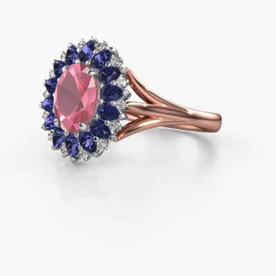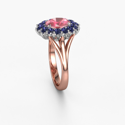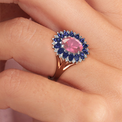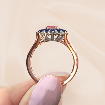 La bague de fiançailles présentée ci-dessus a été nommée Lidia. Nous appelons ce type de bague de fiançailles une bague entourage. Ici, de petites pierres précieuses sont serties autour de la pierre centrale dans un sertissage ouvert. Cette bague de fiançailles forgée en or 14 Carat a un rose tourmaline ovale de 8x6 mm en guise de pierre centrale qui est aussi entourée de petits saphir. Les petites pierres précieuses qui sont serties autour du large rose tourmaline sous la forme d’une belle fleur rendent cette bague de fiançailles entourage forgée en or rose vintage si spéciale. Ils donnent l'effet de former une grosse pierre précieuse étincelante. Cette bague de fiançailles peut aussi avoir un autre nom tel que bague fleur ou la bague rosette. Cependant, ces petits rose tourmaline doivent tous être sertis de la même manière, afin que la lumière pénétrant dans le rose tourmaline ne soit pas interrompue et qu'une belle unité soit effectivement créée. Voici donc le travail de nos maîtres orfèvres. Avec la plus grande précision, chaque rose tourmaline soigneusement sélectionné est serti à la main dans la bague de fiançailles. Toujours et encore, la bague de fiançailles est examinée sous la lumière pour voir si l'effet spécial désiré est encore visible. Le résultat est donc une bague de fiançailles unique, où le rose tourmaline choisi devient littéralement le centre brillants. Vous pouvez imaginer que cette bague de fiançailles est vraiment une bague de fiançailles significative à offrir à votre amour de votre vie ! Le jour où vous lui montrerez qu'elle est le centre brillants de votre vie ! Ce bijou est faite avec passion et amour par l'un de nos maîtres orfèvres.En combinant les dernières techniques modernes, associées à une fabrication ancienne, nous sommes en mesure de fabriquer nos bagues de fiançailles dans notre propre studio. Chaque bijou est fabriqué sur commande. Ceci est avantageux car nous sommes en mesure de vous proposer un prix que vous ne trouverez nulle part ailleurs.Avez-vous déjà des bague de fiançailles spécifiques en tête ? Une bague de fiançailles que vous avez vu quelque part. N'hésitez pas à nous faire part de vos souhaits et nous transformerons votre design en des bague de fiançailles uniques. Vous êtes en mesure de suivre l'évolution de la conception de vos bague de fiançailles car nous utilisons des dessins en 3D. Cela vous donnera un aperçu réaliste de votre design. Nous vous enverrons volontiers une offre sans engagement basée sur un rapport qualité / prix juste. Elle va vous étonner.Pour vous faciliter la tâche, vous pouvez facilement nous retourner tout bijou commandé dans les 30 jours suivant la livraison.