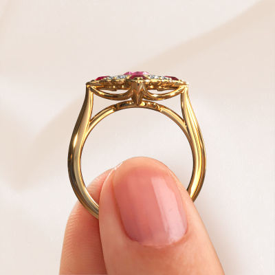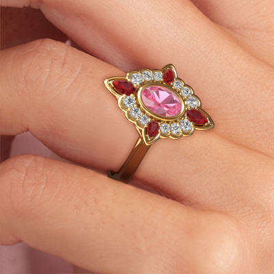 Nous avons donné le nom Door à cette bague de fiançailles. Cette bague forgée en or 14 Carat est sertie d’un saphir rose de 7x5 mm. Cette bague est une large bague vintage forgée en or jaune unique qui fera certainement briller l’amour de votre vie ! Et c'est exactement ce que nous avons comme objectif. Un beau saphir rose est serti dans cette bague de fiançailles vintage. Vous pouvez, bien entendu, utiliser chaque pierre précieuses que nous proposons sur notre site La pierre précieuse sera sélectionnée avec soin, car nous pensons que seule la plus belle des pierres précieuses peut briller sur votre bague de fiançailles osés, qu’en dites-vous ? Notre orfèvre fabrique votre bague de fiançailles dans notre propre atelier et place le saphir rose dans l'anneau de la bague avec une précision extrême. Donc, elle est travaillée et polie jusqu'à ce que le résultat désiré soit visible : la bague de fiançailles parfaite pour l'amour de votre vie ! Ce bijou est fabriquée spécialement pour vous par nos maîtres orfèvres dans notre propre atelier.Saviez-vous que nous offrons la garantie du meilleur prix pour votre bague de fiançailles? Cela est possible car tous nos bijoux sont fabriqués à la main dans notre propre atelier. Nous n'avons pas de frais de stocks qui sont coûteux, et nous fabriquons votre bague uniquement une fois que vous l'avez commandée. Grâce au fait que nous ayons toute la production du bijou en main, nous pouvons vous informer sur toutes les caractéristiques de cette bague de fiançailles. C’est précisément parce que l’achat d’une bague en ligne est une expérience excitante que nous comprenons qu’il est plus confortable pour vous de connaître toutes les caractéristiques de votre bague.Notre équipe ajoute quotidiennement de nouveaux modèles à notre collection en ligne. Nos designers et orfèvres travaillent ensemble pour créer le meilleur design. Nous nous efforçons d'offrir une collection diversifiée de bijoux. Peut-être avez-vous déjà en tête un bijou en particulier ? Un bijou que vous avez trouvé quelque part. Veuillez nous contacter pour une consultation gratuite. Nous vous ferons une offre, basée sur un rapport qualité / prix juste, qui vous déconcertera.Pour vous faciliter la tâche, vous pouvez facilement nous retourner tout bijou commandé dans les 30 jours suivant la livraison.