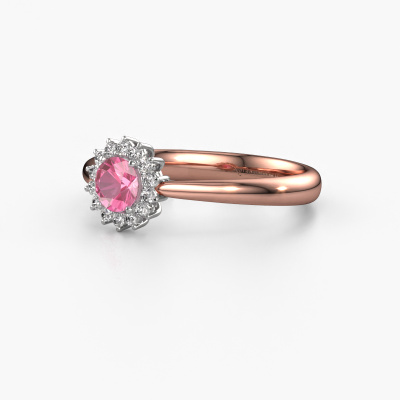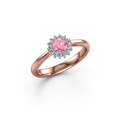 La bague de fiançailles présentée ci-dessus a été nommée Tilly RND 1. Nous appelons ce type de bague de fiançailles une bague entourage. Ici, de petites pierres précieuses sont serties autour de la pierre centrale dans un sertissage ouvert. Cette bague de fiançailles forgée en or 14 Carat a un saphir rose ronds de 4.2 mm en guise de pierre centrale qui est aussi entourée de petits diamants. Les petites pierres précieuses qui sont serties autour du large saphir rose sous la forme d’une belle fleur rendent cette bague de fiançailles entourage forgée en or rose classiques si spéciale. Ils donnent l'effet de former une grosse pierre précieuse étincelante. Cette bague de fiançailles peut aussi avoir un autre nom tel que bague fleur ou la bague rosette. Cependant, ces petits saphirs roses doivent tous être sertis de la même manière, afin que la lumière pénétrant dans le saphir rose ne soit pas interrompue et qu'une belle unité soit effectivement créée. Voici donc le travail de nos maîtres orfèvres. Avec la plus grande précision, chaque saphir rose soigneusement sélectionné est serti à la main dans la bague de fiançailles. Toujours et encore, la bague de fiançailles est examinée sous la lumière pour voir si l'effet spécial désiré est encore visible. Le résultat est donc une bague de fiançailles unique, où le saphir rose choisi devient littéralement le centre brillants. Vous pouvez imaginer que cette bague de fiançailles est vraiment une bague de fiançailles significative à offrir à votre amour de votre vie ! Le jour où vous lui montrerez qu'elle est le centre brillants de votre vie ! Ce bijou est fabriquées avec passion et amour par l'un de nos maîtres orfèvres.En combinant les dernières techniques modernes, associées à une fabrication ancienne, nous sommes en mesure de fabriquer nos bagues de fiançailles dans notre propre studio. Chaque bijou est fabriqué sur commande. Ceci est avantageux car nous sommes en mesure de vous proposer un prix que vous ne trouverez nulle part ailleurs.Notre équipe ajoute quotidiennement de nouveaux modèles à notre collection en ligne. Nos designers et orfèvres travaillent ensemble pour créer le meilleur design. Nous nous efforçons d'offrir une collection diversifiée de bijoux. Peut-être avez-vous déjà en tête un bijou en particulier ? Un bijou que vous avez trouvé quelque part. Veuillez nous contacter pour une consultation gratuite. Nous vous ferons une offre, basée sur un rapport qualité / prix juste, qui vous déconcertera.Pour vous faciliter la tâche, vous pouvez facilement nous retourner tout bijou commandé dans les 30 jours suivant la livraison.