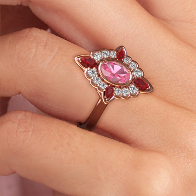 Nous avons donné le nom Door à cette bague de fiançailles. Cette bague forgée en or 14 Carat est sertie d’un saphir rose de 7x5 mm. Cette bague est une large bague vintage forgée en or rose unique qui fera certainement briller l’amour de votre vie ! Et c'est exactement ce que nous avons comme objectif. Un beau saphir rose est serti dans cette bague de fiançailles vintage. Vous pouvez, bien entendu, utiliser chaque pierre précieuses que nous proposons sur notre site La pierre précieuse sera sélectionnée avec soin, car nous pensons que seule la plus belle des pierres précieuses peut briller sur votre bague de fiançailles osés, qu’en dites-vous ? Notre orfèvre fabrique votre bague de fiançailles dans notre propre atelier et place le saphir rose dans l'anneau de la bague avec une précision extrême. Donc, elle est travaillée et polie jusqu'à ce que le résultat désiré soit visible : la bague de fiançailles parfaite pour l'amour de votre vie ! Ce bijou est fabriquée spécialement pour vous par nos maîtres orfèvres dans notre propre atelier.Saviez-vous que nous offrons la garantie du meilleur prix pour votre bague de fiançailles? Cela est possible car tous nos bijoux sont fabriqués à la main dans notre propre atelier. Nous n'avons pas de frais de stocks qui sont coûteux, et nous fabriquons votre bague uniquement une fois que vous l'avez commandée. Grâce au fait que nous ayons toute la production du bijou en main, nous pouvons vous informer sur toutes les caractéristiques de cette bague de fiançailles. C’est précisément parce que l’achat d’une bague en ligne est une expérience excitante que nous comprenons qu’il est plus confortable pour vous de connaître toutes les caractéristiques de votre bague.Notre équipe ajoute quotidiennement de nouveaux modèles à notre collection en ligne. Nos designers et orfèvres travaillent ensemble pour créer le meilleur design. Nous nous efforçons d'offrir une collection diversifiée de bijoux. Peut-être avez-vous déjà en tête un bijou en particulier ? Un bijou que vous avez trouvé quelque part. Veuillez nous contacter pour une consultation gratuite. Nous vous ferons une offre, basée sur un rapport qualité / prix juste, qui vous déconcertera.Pour vous faciliter la tâche, vous pouvez facilement nous retourner tout bijou commandé dans les 30 jours suivant la livraison.