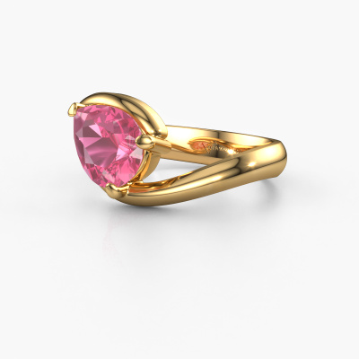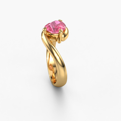 Le nom de cette bague de fiançailles est Aida PER. Elle est forgée en or 14 Carat et est sertie d'un saphir rose de 9x7 mm. Êtes-vous à la recherche d'une bague de fiançailles forgée en or jaune fantaisie que vous pourrez adapter à votre