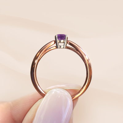 Nous avons donné le nom Nichole à la bague de fiançailles mentionnée ci-dessous. Ce type de bague de fiançailles s'appelle une bague de fiançailles Solitaire car elle ne contient qu’une seule pierre précieuse. La bague de fiançailles est forgée en or 14 Carat et comporte un améthyste ronds d’une de 4.2 mm. Cette belle bague de fiançailles solitaire forgée en or rose fantaisie est ornée d'un magnifique améthyste ronds qui rendra votre demande en mariage très spéciale. Le sertissage chaton ouvert crée un magnifique effet de lumière sur le diamants. Saviez-vous que le diamants symbolise l'amour et la fidélité éternels ? C'est précisément la raison pour laquelle c'est une magnifique pierre précieuse à mettre au centre. Notre orfèvre place la pierre précieuse en élévation sur la bague, ce qui la fera attirer tous les regards. Chaque bijou est fabriquée spécialement pour vous par nos maîtres orfèvres dans notre propre atelier.Saviez-vous que nous offrons la garantie du meilleur prix pour votre bague de fiançailles? Cela est possible car tous nos bijoux sont fabriqués à la main dans notre propre atelier. Nous n'avons pas de frais de stocks qui sont coûteux, et nous fabriquons votre bague uniquement une fois que vous l'avez commandée. Grâce au fait que nous ayons toute la production du bijou en main, nous pouvons vous informer sur toutes les caractéristiques de cette bague de fiançailles. C’est précisément parce que l’achat d’une bague en ligne est une expérience excitante que nous comprenons qu’il est plus confortable pour vous de connaître toutes les caractéristiques de votre bague.Avez-vous déjà des bague de fiançailles spécifiques en tête ? Une bague de fiançailles que vous avez vu quelque part. N'hésitez pas à nous faire part de vos souhaits et nous transformerons votre design en des bague de fiançailles uniques. Vous êtes en mesure de suivre l'évolution de la conception de vos bague de fiançailles car nous utilisons des dessins en 3D. Cela vous donnera un aperçu réaliste de votre design. Nous vous enverrons volontiers une offre sans engagement basée sur un rapport qualité / prix juste. Elle va vous étonner.Pour vous faciliter la tâche, vous pouvez facilement nous retourner tout bijou commandé dans les 30 jours suivant la livraison.