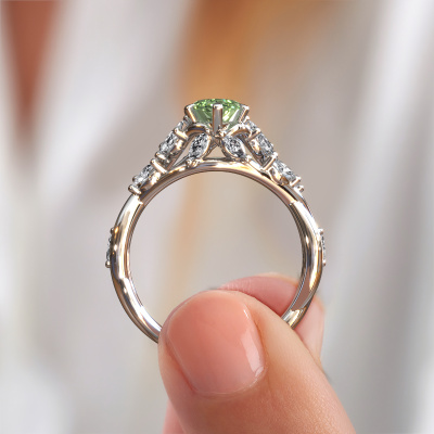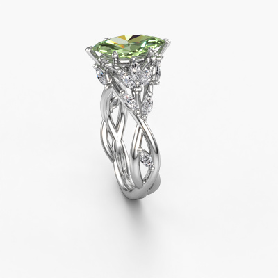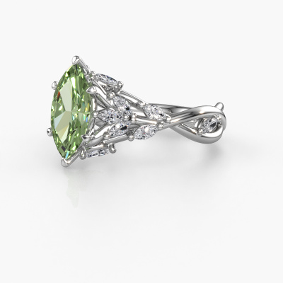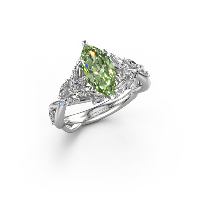 Cette bague de fiançailles porte le nom Samantha MRQ. Cette bague de fiançailles gracieuses est forgée en or 14 Carat et est sertie d’un diamants synthétiques vert de 11x5.5 mm. Cette bague de fiançailles flower et forgée en or blanc unique est un pur travail d’art ! Tous les petits détails ont été fabriqués avec beaucoup de patience et de passion par notre orfèvre. Ce métier nécessite un œil expert et une main habile pour assembler cette bague de fiançailles avec la plus grande précision. Et ce travail est précisément ce qui enthousiasme nos orfèvres ! Les plus beaux diamants synthétiques vert sont sertis de manière large, de telle sorte qu'ils puissent rendre un effet encore meilleurs. Cela donne donc une allure supplémentaire à la bague de fiançailles. La bague de fiançailles est unique en raison de sa pierre précieuse naturelle, que nous avons spécialement sélectionnée pour cette bague. De plus, vous pouvez choisir vous-même la composition du métal précieux de votre bague. Vous aurez donc créé une bague de fiançailles unique pour la femmes la plus unique de votre vie ! Ce bijou est faite pour briller sur votre doigt, chaque bijou est fabriqué à la main par nos orfèvres.En combinant les dernières techniques modernes, associées à une fabrication ancienne, nous sommes en mesure de fabriquer nos bagues de fiançailles dans notre propre studio. Chaque bijou est fabriqué sur commande. Ceci est avantageux car nous sommes en mesure de vous proposer un prix que vous ne trouverez nulle part ailleurs.Notre équipe ajoute quotidiennement de nouveaux modèles à notre collection en ligne. Nos designers et orfèvres travaillent ensemble pour créer le meilleur design. Nous nous efforçons d'offrir une collection diversifiée de bijoux. Peut-être avez-vous déjà en tête un bijou en particulier ? Un bijou que vous avez trouvé quelque part. Veuillez nous contacter pour une consultation gratuite. Nous vous ferons une offre, basée sur un rapport qualité / prix juste, qui vous déconcertera.Pour vous faciliter la tâche, vous pouvez facilement nous retourner tout bijou commandé dans les 30 jours suivant la livraison.