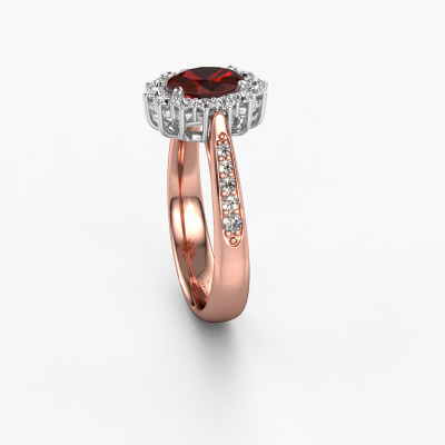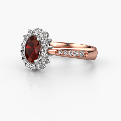 La bague de fiançailles mentionnée ci-dessus a pour nom Margien 2. Nous appelons ce type de bague de fiançailles Lady Diana, dans laquelle des petites pierres précieuses sont placées autour de la pierre centrale dans un sertissage ouvert. Cette bague en or 14 Carat a un grenat ovale de 7x5 mm en tant que pierre centrale qui est entourée par de petits diamants. Vous la connaissez, cette belle bague de fiançailles en or rose Lady Diana et traditionnelles... la plus connue et dont on a le plus parlé dans le monde, pour la plus grande personne dans votre vie ! Ce qui est spécial au sujet de cette bague de fiançailles Lady Diana est le magnifique grenat serti au centre. Les petites pierres précieuses sont serties sur la bague de fiançailles pour renforcer grâce à l'éclat du grenat comme pierre centrale, ce qui vous fait penser que vous portez un grand bijou. Avec conception de cette bague de fiançailles style Lady Di, cet effet est encore plus renforcé. La largeur est que nos orfèvres travaillent cette bague de fiançailles pour la rendre aussi unique que vous. Puisque nous forgeons la bague de fiançailles Lady Diana à la main dans notre propre atelier, nous pouvons la personnaliser exactement comme vous l'avez à l'esprit. Ce bijou est faite pour briller sur votre doigt, chaque bijou est fabriqué à la main par nos orfèvres. Vous avez peut-être remarqué que nos prix sont en moyenne inférieurs de 30% à ceux d'un autre bijoutier. Et ce alors que la qualité de nos bijoux est même plus élevée dans la plupart des cas ! En effet, nos orfèvres fabriquent votre bague de fiançailles directement dans notre propre atelier. Cela signifie que nous n'avons pas à inclure des frais de stocks coûteux et que nous pouvons travailler n'importe quel détail directement sur votre bague de fiançailles. Notre équipe ajoute quotidiennement de nouveaux modèles à notre collection en ligne. Nos designers et orfèvres travaillent ensemble pour créer le meilleur design. Nous nous efforçons d'offrir une collection diversifiée de bijoux. Peut-être avez-vous déjà en tête un bijou en particulier ? Un bijou que vous avez trouvé quelque part. Veuillez nous contacter pour une consultation gratuite. Nous vous ferons une offre, basée sur un rapport qualité / prix juste, qui vous déconcertera. Pour vous faciliter la tâche, vous pouvez facilement nous retourner tout bijou commandé dans les 30 jours suivant la livraison.