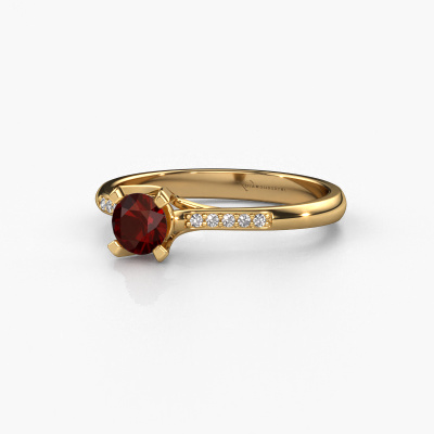 Nous avons donné le nom Isa 2 à la bague de fiançailles mentionnée ci-dessous. Ce type de bague de fiançailles est appelé une bague de fiançailles solitaire pavé car elle ne comporte qu’une seule pierre centrale et les tiges de la bague de fiançailles ont également une finition pleine. Cette bague de fiançailles est forgée en or 14 Carat et comporte un grenat ronds de 4.2 mm. Des diamants sont sertis dans les épaules latérales de l’anneau. Chaque bijou est faite pour briller sur votre doigt, chaque bijou est fabriqué à la main par nos orfèvres.. Cette bague de fiançailles solitaire pavé forgée en or jaune classiques a un beau grenat ronds en guise de pierre centrale, avec plus de diamants dans l’anneau pour accentuer encore plus l’effet de la pierre centrale. Le sertissage à griffes autour du grenat étant ouvert, le grenat capte la lumière de tous les côtés et brille de manière optimale. Ci-dessus, vous pouvez voir comment notre orfèvre a travaillé la bague de fiançailles dans les moindres détails. de telle sorte que le grenat élevé puisse véritablement attirer tous les regards. Quelle belle bague de fiançailles à offre lors de votre demande en mariage à l'amour de votre vie, à votre centre rayonnant ! Saviez-vous que nous offrons la garantie du meilleur prix pour votre bague de fiançailles? Cela est possible car tous nos bijoux sont fabriqués à la main dans notre propre atelier. Nous n'avons pas de frais de stocks qui sont coûteux, et nous fabriquons votre bague uniquement une fois que vous l'avez commandée. Grâce au fait que nous ayons toute la production du bijou en main, nous pouvons vous informer sur toutes les caractéristiques de cette bague de fiançailles. C’est précisément parce que l’achat d’une bague en ligne est une expérience excitante que nous comprenons qu’il est plus confortable pour vous de connaître toutes les caractéristiques de votre bague.Notre équipe ajoute quotidiennement de nouveaux modèles à notre collection en ligne. Nos designers et orfèvres travaillent ensemble pour créer le meilleur design. Nous nous efforçons d'offrir une collection diversifiée de bijoux. Peut-être avez-vous déjà en tête un bijou en particulier ? Un bijou que vous avez trouvé quelque part. Veuillez nous contacter pour une consultation gratuite. Nous vous ferons une offre, basée sur un rapport qualité / prix juste, qui vous déconcertera.Pour vous faciliter la tâche, vous pouvez facilement nous retourner tout bijou commandé dans les 30 jours suivant la livraison.