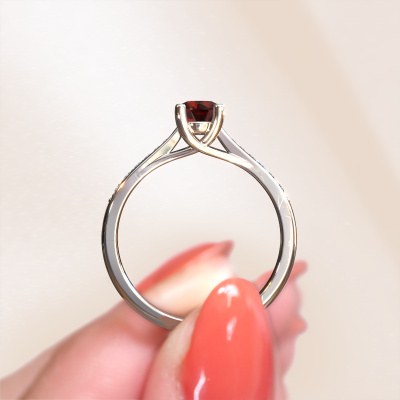 Nous avons donné le nom Mia 2 à la bague de fiançailles mentionnée ci-dessous. Ce type de bague de fiançailles est appelé une bague de fiançailles solitaire pavé car elle ne comporte qu’une seule pierre centrale et les tiges de la bague de fiançailles ont également une finition pleine. Cette bague de fiançailles est forgée en or et comporte un grenat ronds de 5 mm. Des diamants synthétiques sont sertis dans les épaules latérales de l’anneau. Chaque bijou est faite spécialement pour vous, avec une attention particulière portée aux détails et au design.. Cette bague de fiançailles solitaire pavé forgée en platine modernes a un beau grenat ronds en guise de pierre centrale, avec plus de diamants synthétiques dans l’anneau pour accentuer encore plus l’effet de la pierre centrale. Le sertissage à griffes autour du grenat étant ouvert, le grenat capte la lumière de tous les côtés et brille de manière optimale. Ci-dessus, vous pouvez voir comment notre orfèvre a travaillé la bague de fiançailles dans les moindres détails. de telle sorte que le grenat élevé puisse véritablement attirer tous les regards. Quelle belle bague de fiançailles à offre lors de votre demande en mariage à l'amour de votre vie, à votre centre rayonnant ! Qu'y a-t-il dorénavant de plus beau qu'une bague de fiançailles modernes conçue par vous-même et fabriquée à la main par nous. Vous pouvez personnaliser chaque modèle avec les différents métaux précieux et pierres précieuses. De cette façon, vous pourrez créer une bague de fiançailles unique. Cette bague peut être mise en place de plusieurs façons. Bien sûr, vous pouvez toujours nous contacter et nous serons heureux de vous aider à composer votre bague de fiançailles modernes Mia 2. Vous aimez le design, mais vous souhaitez tout de même quelque chose qui vous convienne plus, ou bien vous souhaitez une pierre précieuse dans les bijoux que vous ne pouvez pas choisir sur notre site, contactez-nous et nous vous aiderons.Notre équipe ajoute quotidiennement de nouveaux modèles à notre collection en ligne. Nos designers et orfèvres travaillent ensemble pour créer le meilleur design. Nous nous efforçons d'offrir une collection diversifiée de bijoux. Peut-être avez-vous déjà en tête un bijou en particulier ? Un bijou que vous avez trouvé quelque part. Veuillez nous contacter pour une consultation gratuite. Nous vous ferons une offre, basée sur un rapport qualité / prix juste, qui vous déconcertera.Pour vous faciliter la tâche, vous pouvez facilement nous retourner tout bijou commandé dans les 30 jours suivant la livraison.