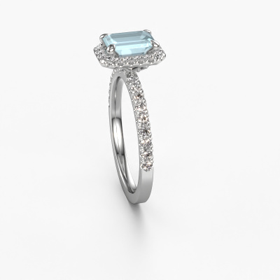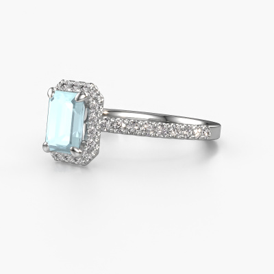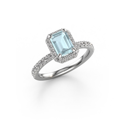 La bague de fiançailles mentionnée ci-dessus est nommée Miranda eme. Nous appelons ce type de bague de fiançailles une bague Halo. La bague de fiançailles est forgée en or 14 Carat et comporte un aigue-marine taille émeraude de la de 7x5 mm et autour duquel sont sertis de petits diamants. La largeur de cette bague de fiançailles halo forgée en or blanc classiques vient des plus petites pierres précieuses qui sont serties autour du large aigue-marine central. C’est également ce à partir de quoi cette belle bague de fiançailles tire son nom : halo signifie halo et c’est aussi l’effet que rendent les pierres précieuses plus petites. Cependant, ces pierres précieuses plus petites doivent toutes être serties de la même manière, afin que la lumière ne soit pas seulement introduite dans le aigue-marine et qu’un véritable halo de lumière soit créé. Et c'est ce que font nos maîtres orfèvres. Avec la plus grande précision, chaque aigue-marine soigneusement sélectionné est placé à la main dans la bague de fiançailles. Encore et encore, la bague de fiançailles est maintenue à la lumière pour voir si l'effet spécial est toujours visible. Le résultat est une bague de fiançailles unique, où le aigue-marine choisi devient littéralement le centre brillants. Vous pouvez imaginer que cette bague de fiançailles est vraiment une bague de fiançailles significative à offrir à votre amour de la vie ! Le jour où vous montrez qu’elle est votre centre brillants ! En combinant les dernières techniques modernes, associées à une fabrication ancienne, nous sommes en mesure de fabriquer nos bagues de fiançailles dans notre propre studio. Chaque bijou est fabriqué sur commande. Ceci est avantageux car nous sommes en mesure de vous proposer un prix que vous ne trouverez nulle part ailleurs.Notre équipe de designers talentueux et passionnés ajoute chaque jour de nouveaux modèles bague de fiançailles à notre collection en ligne. Notre objectif est de pouvoir vous offrir une grande variété de bijoux. N'hésitez pas à demander un devis si vous avez des souhaits spécifiques pour votre bague de fiançailles. Nous garantissons de vous faire une offre que vous ne pourrez pas refuser.Pour vous faciliter la tâche, vous pouvez facilement nous retourner tout bijou commandé dans les 30 jours suivant la livraison.