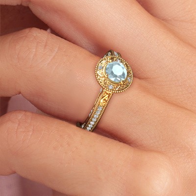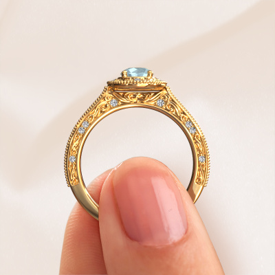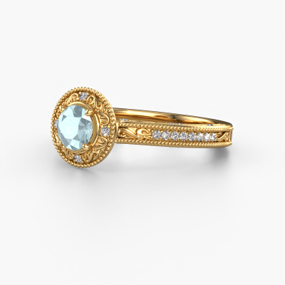 Nous avons donné le nom Alice RND à cette bague de fiançailles. Cette bague forgée en or 14 Carat est sertie d’un aigue-marine de 5 mm. Cette bague est une large bague vintage forgée en or jaune unique qui fera certainement briller l’amour de votre vie ! Et c'est exactement ce que nous avons comme objectif. Un beau aigue-marine est serti dans cette bague de fiançailles vintage. Vous pouvez, bien entendu, utiliser chaque pierre précieuses que nous proposons sur notre site La pierre précieuse sera sélectionnée avec soin, car nous pensons que seule la plus belle des pierres précieuses peut briller sur votre bague de fiançailles millegrain, qu’en dites-vous ? Notre orfèvre fabrique votre bague de fiançailles dans notre propre atelier et place le aigue-marine dans l'anneau de la bague avec une précision extrême. Donc, elle est travaillée et polie jusqu'à ce que le résultat désiré soit visible : la bague de fiançailles parfaite pour l'amour de votre vie ! Ce bijou est fabriquées avec passion et amour par l'un de nos maîtres orfèvres.Vous avez peut-être remarqué que nos prix sont en moyenne inférieurs de 30% à ceux d'un autre bijoutier. Et ce alors que la qualité de nos bijoux est même plus élevée dans la plupart des cas ! En effet, nos orfèvres fabriquent votre bague de fiançailles directement dans notre propre atelier. Cela signifie que nous n'avons pas à inclure des frais de stocks coûteux et que nous pouvons travailler n'importe quel détail directement sur votre bague de fiançailles.Notre équipe ajoute quotidiennement de nouveaux modèles à notre collection en ligne. Nos designers et orfèvres travaillent ensemble pour créer le meilleur design. Nous nous efforçons d'offrir une collection diversifiée de bijoux. Peut-être avez-vous déjà en tête un bijou en particulier ? Un bijou que vous avez trouvé quelque part. Veuillez nous contacter pour une consultation gratuite. Nous vous ferons une offre, basée sur un rapport qualité / prix juste, qui vous déconcertera.Pour vous faciliter la tâche, vous pouvez facilement nous retourner tout bijou commandé dans les 30 jours suivant la livraison.